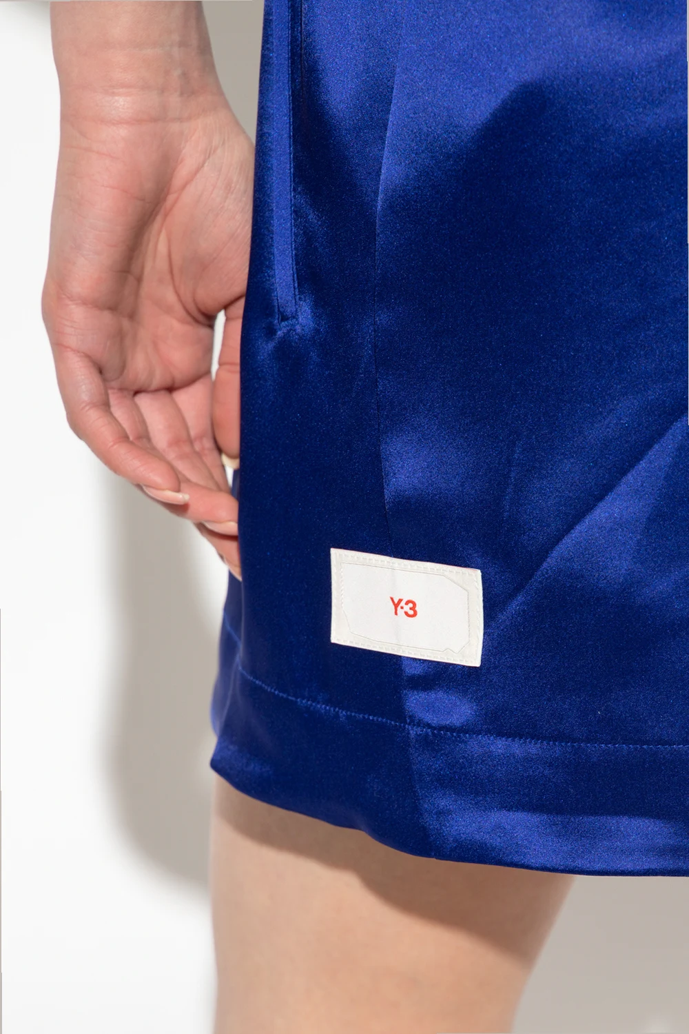 Dark blue from Y-3 Yohji Yamamoto. Rendered in satin fabric, this pair features a drawstring waist, two front zip pockets and a side logo patch.