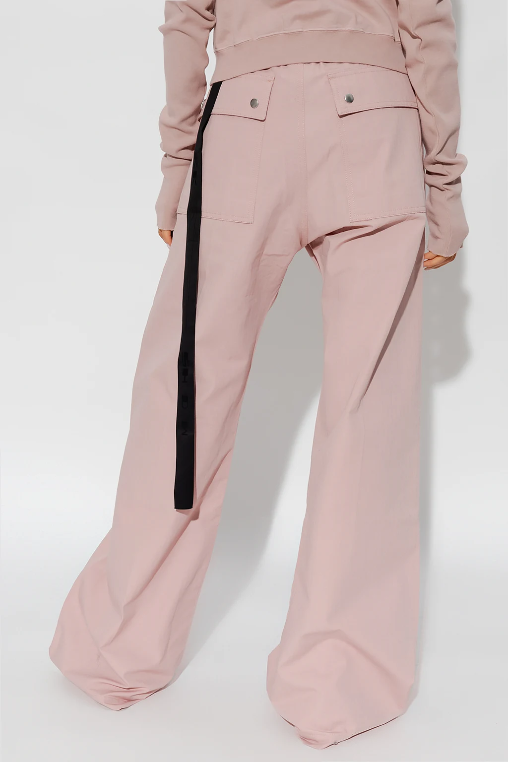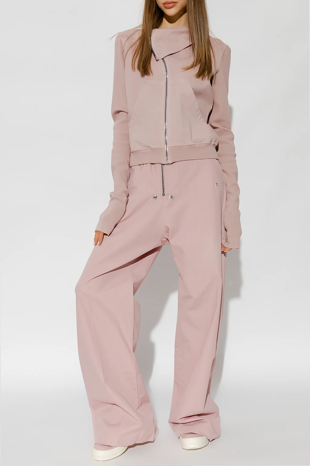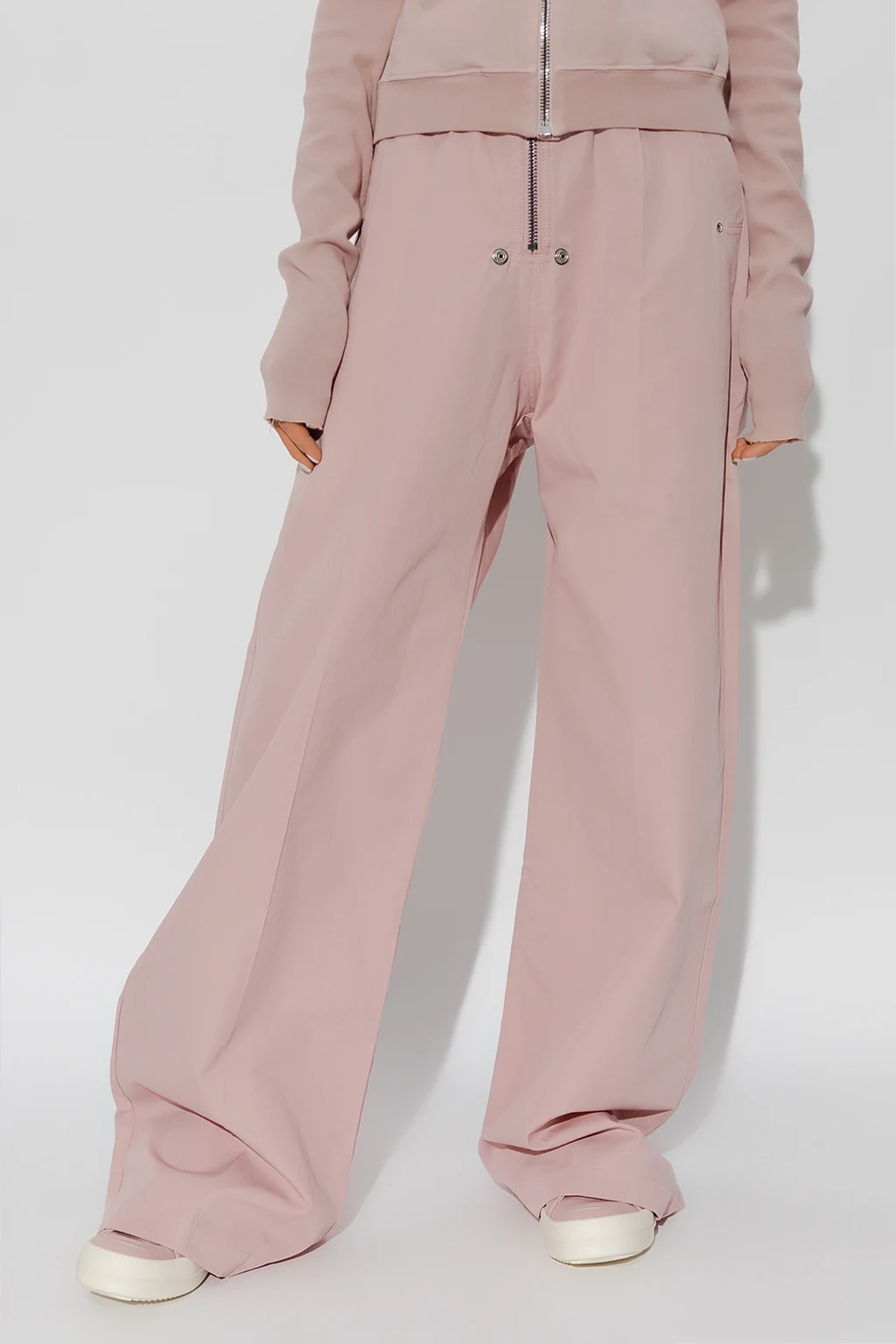 Pink trousers from Rick Owens DRKSHDW. Made of cotton, this pair features an elastic drawstring waistband, zip fastening, four slip pockets and straight legs.