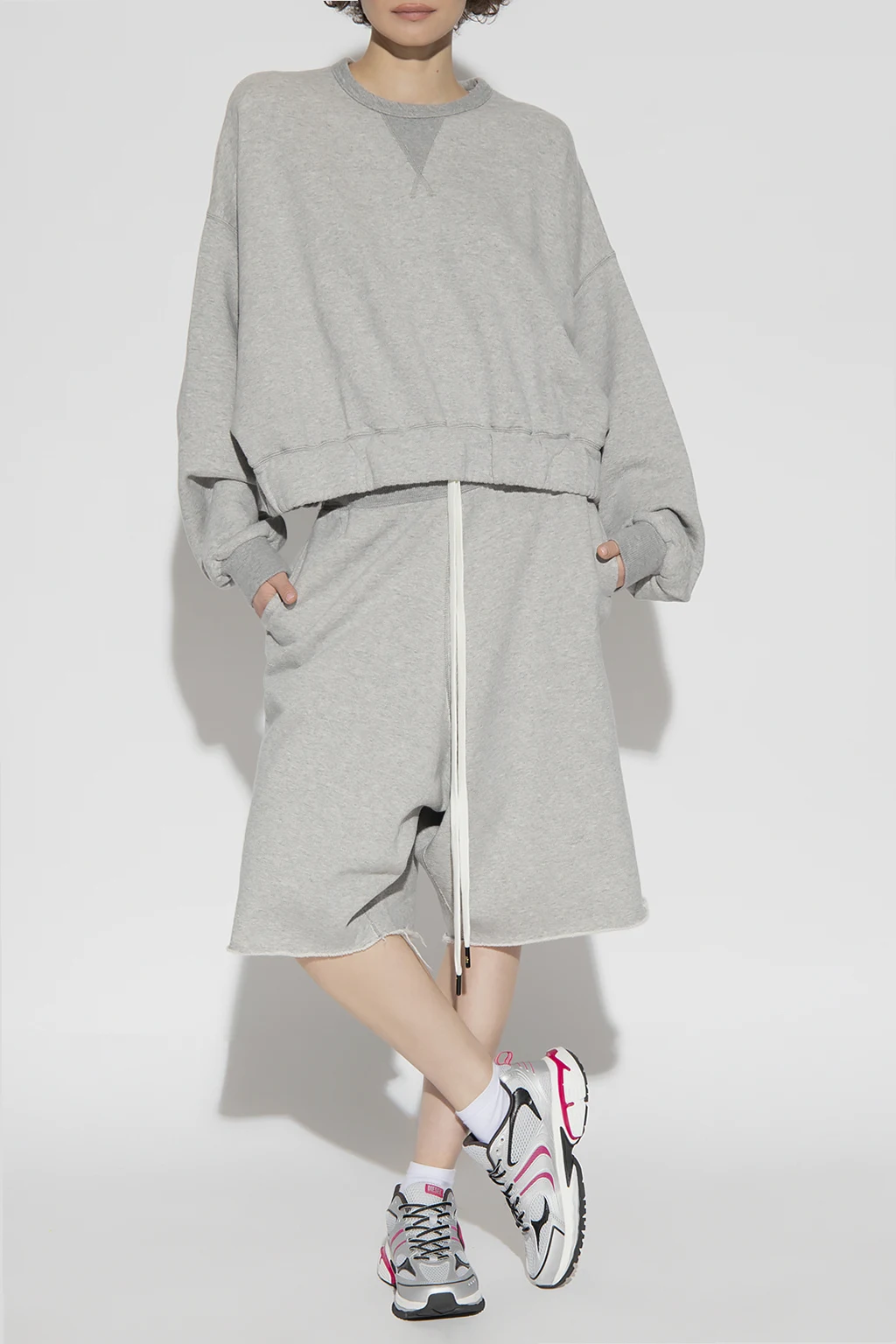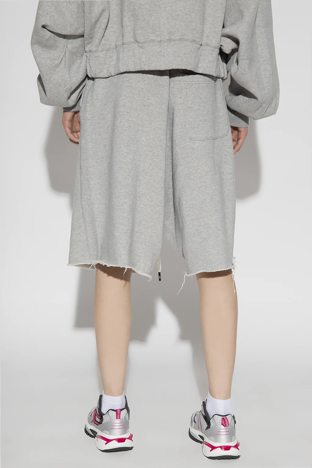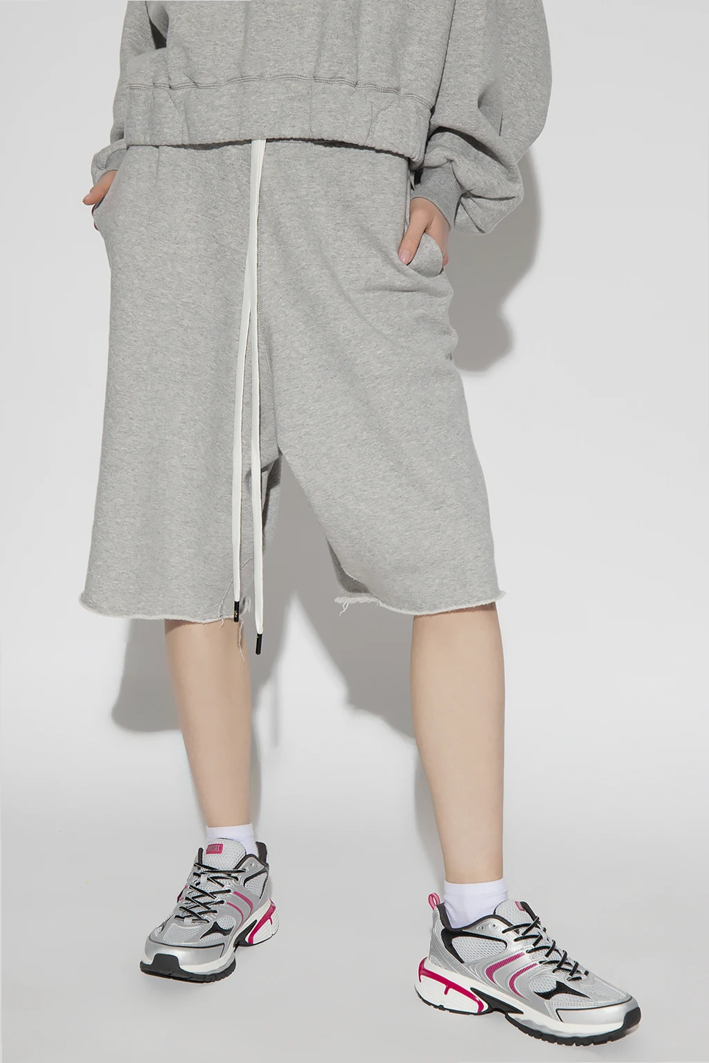 Grey oversize shorts from R13. Made of cotton, this design features an elastic drawstring waistband and three slip pockets.