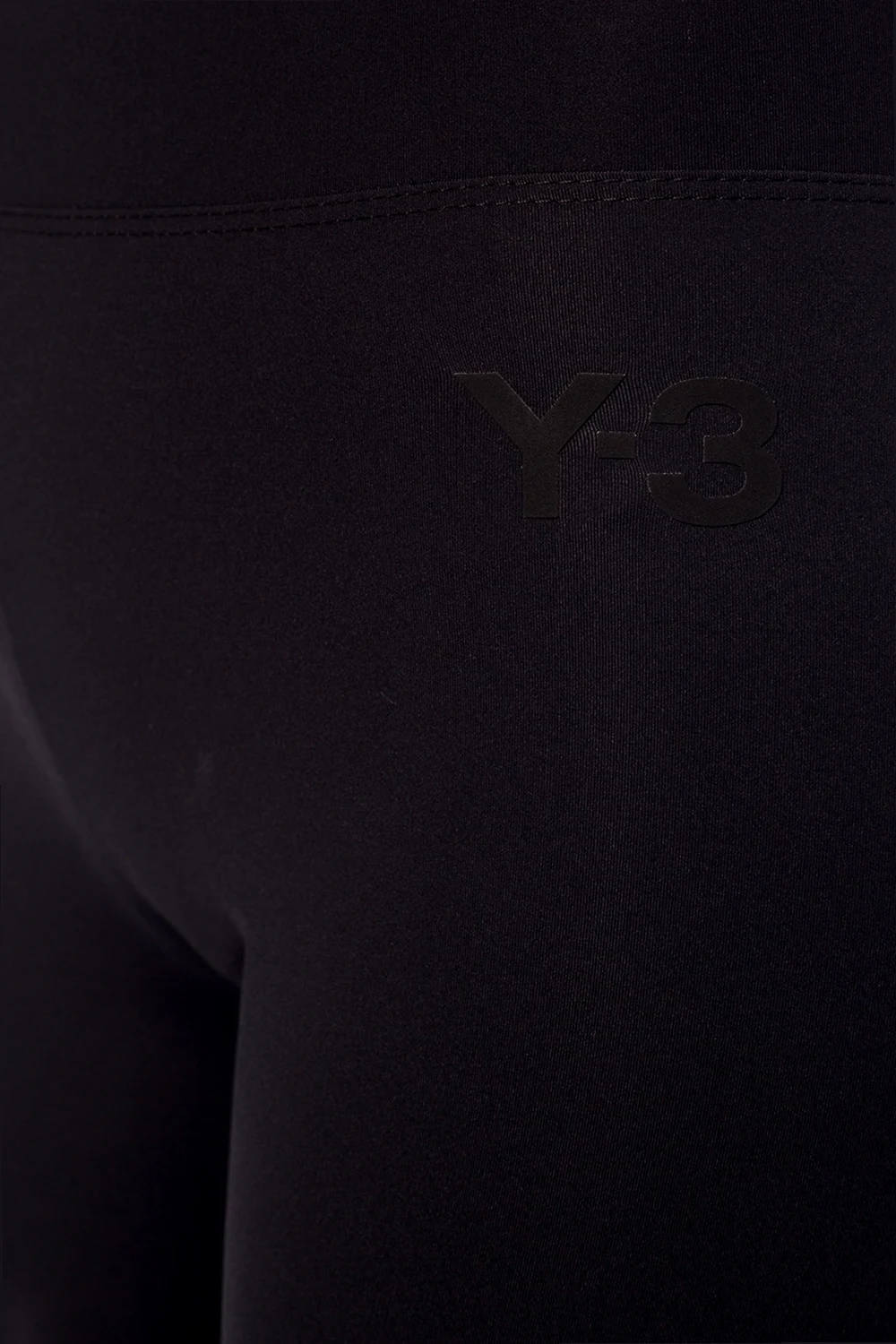 Black performance leggings from Y-3 Yohji Yamamoto. Decorated with a black logo. Zip pocket at the back.