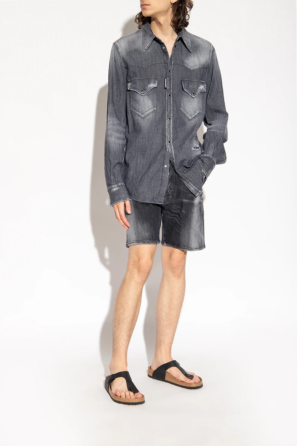 Black ‘Gizeh BS’ slides from Birkenstock. Crafted with Birko-Flor®, this model features an adjustable buckle strap, an embossed logo on the side, an anatomically shaped cork-latex footbed and a brown natural cork sole with a black EVA foam trim. Standard width.