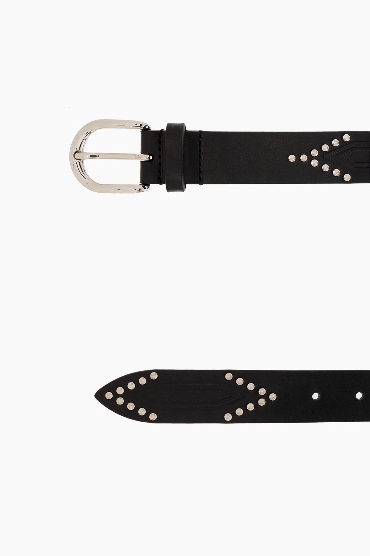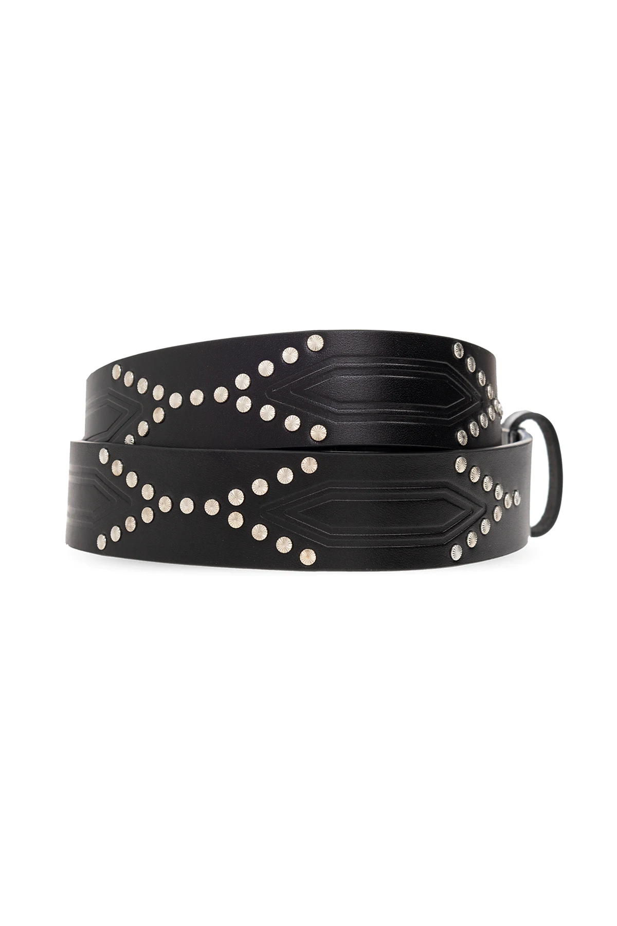 Black ‘Tellyh’ belt from MARANT. Crafted from leather, this item features silver-tone studs and an embossed logo.