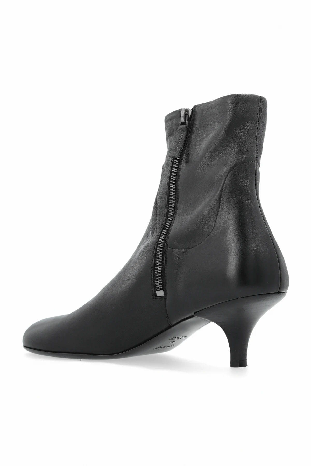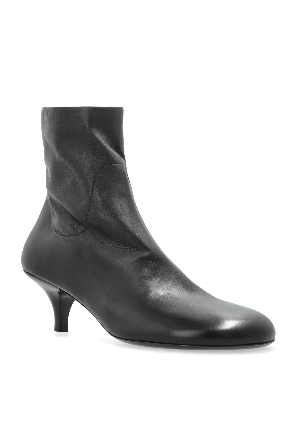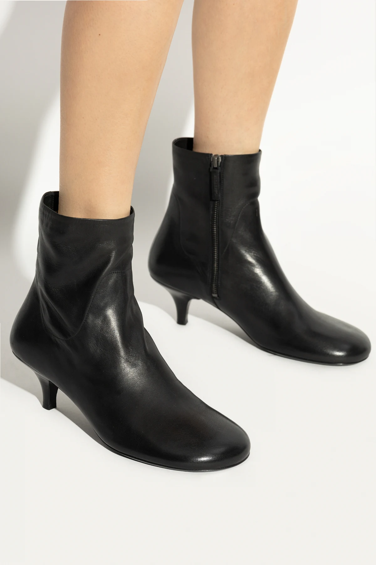 Wir präsentieren Lederstiefeletten mit Absatz aus der exklusiven Kollektion der Marke Marsell, die klassische Eleganz und höchste Verarbeitungsqualität vereinen. Hergestellt aus ausgewähltem schwarzem Leder, begeistern diese Stiefeletten mit einer schlanken, anliegenden Form und einer abgerundeten Spitze, die ihnen einen subtilen und zugleich raffinierten Charakter verleihen.