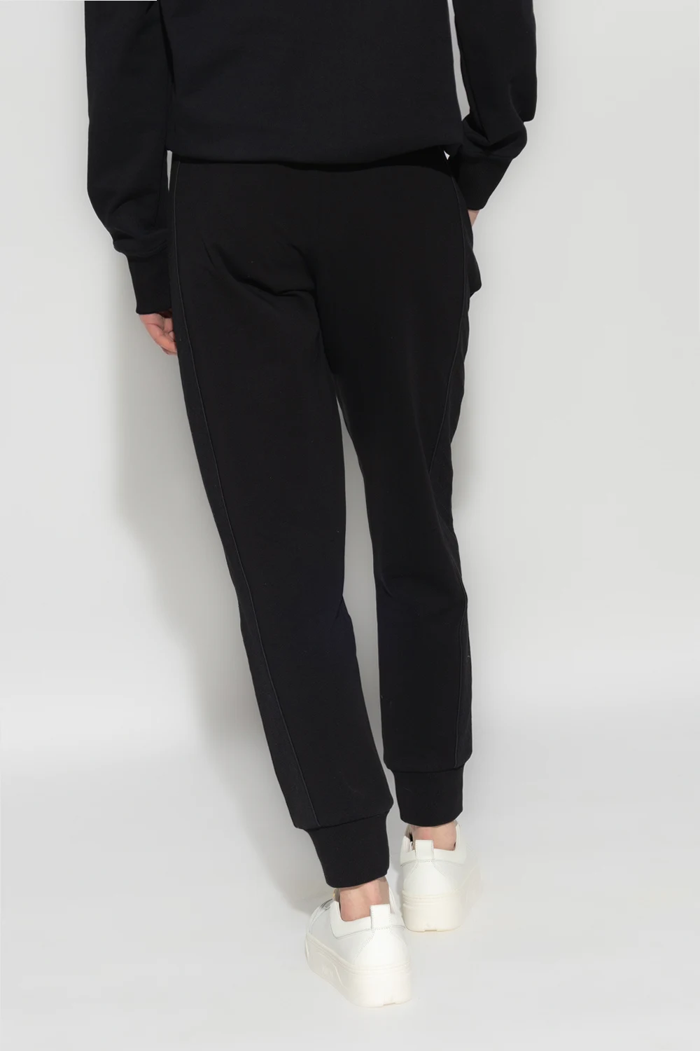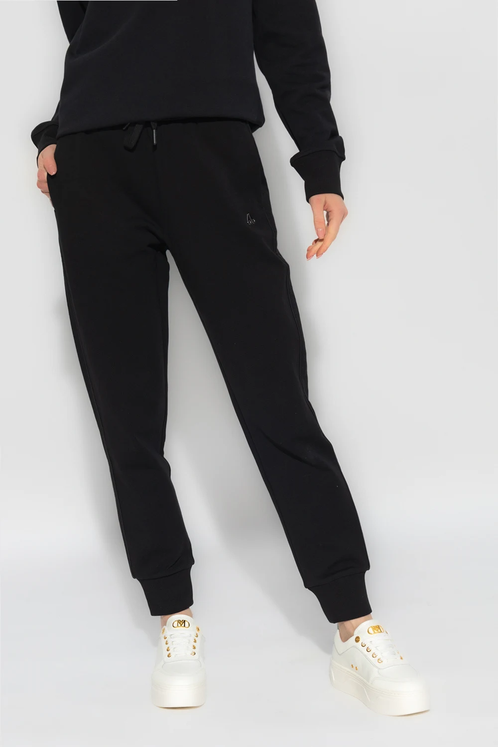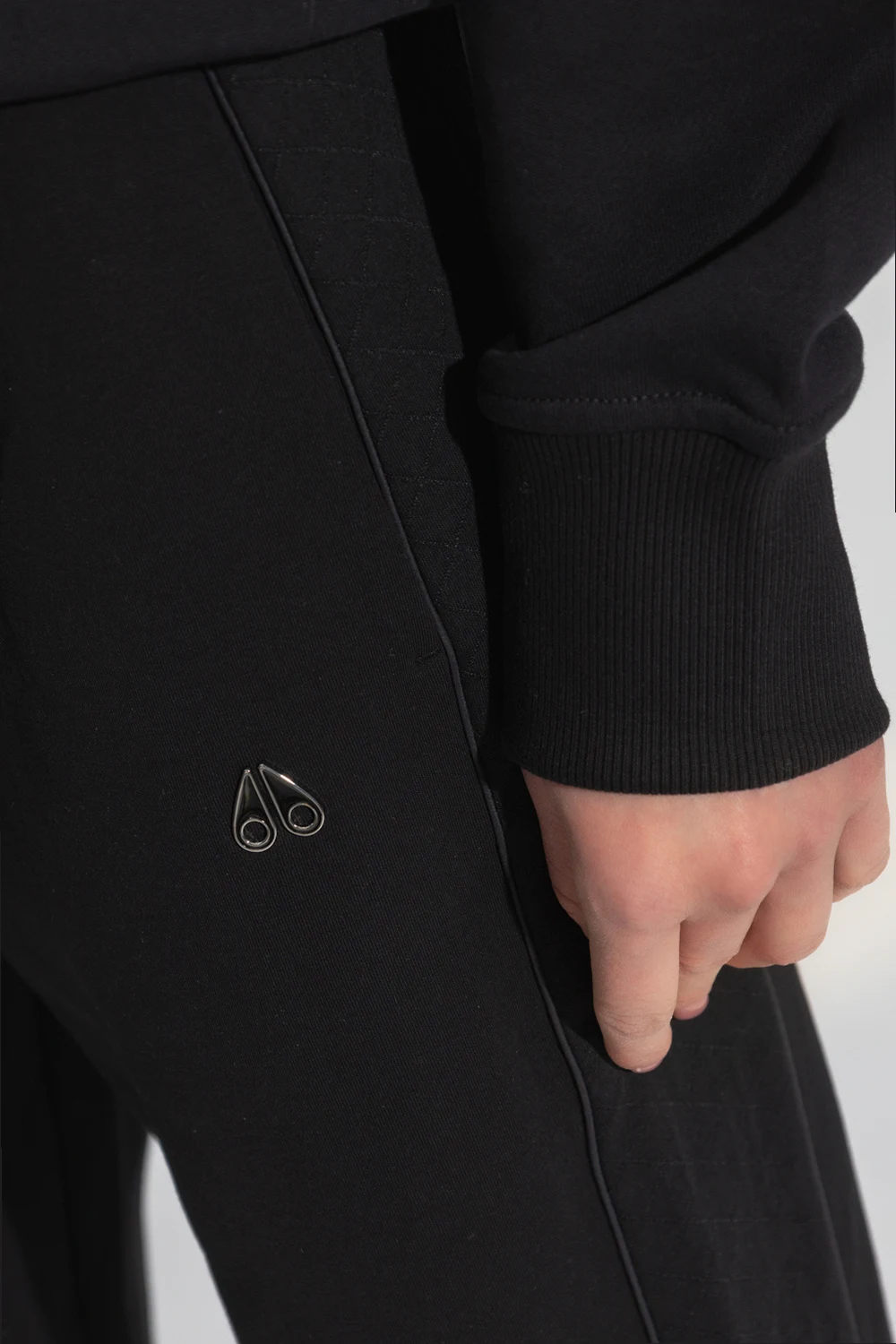 Black trousers from Moose Knuckles. Crafted from cotton this pair is cinched with drawstrings at the waist and features a logo application, elasticated cuffs and two slip pockets.