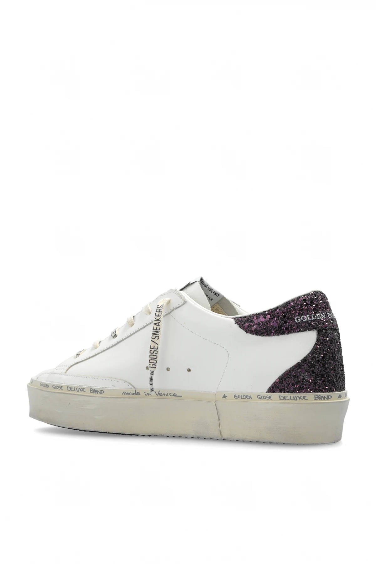 Einzigartige dekorative Elemente und Beschriftungen, die die Zugehörigkeit zur renommierten Marke Golden Goose belegen.