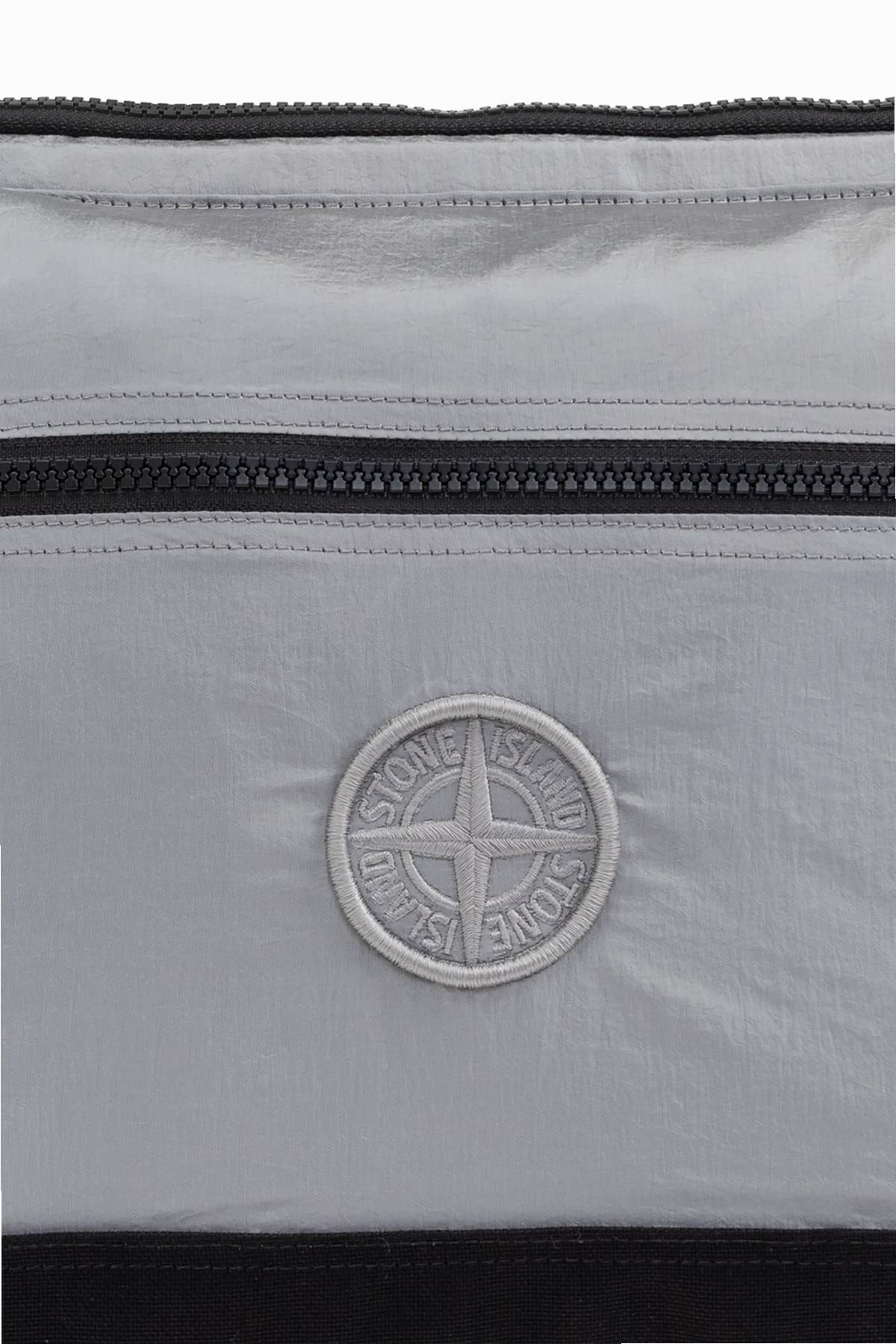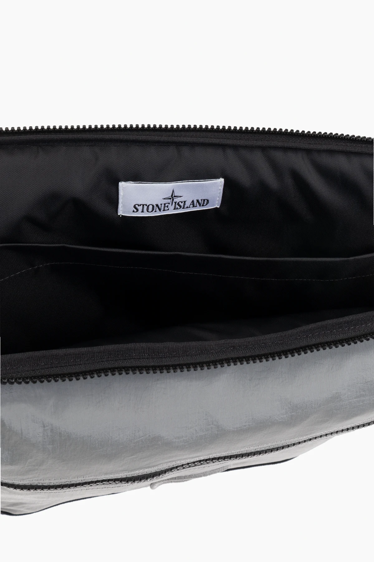 Details wie der runde Designerl-ogoaufnäher und der praktische Reißverschluss auf der Vordertasche unterstreichen ihre Einzigartigkeit. Das mit dunklem Material ausgekleidete Innere, versehen mit einem Etikett mit der Aufschrift "Stone Island", vervollständigt den eleganten Charakter dieser außergewöhnlichen Tasche.