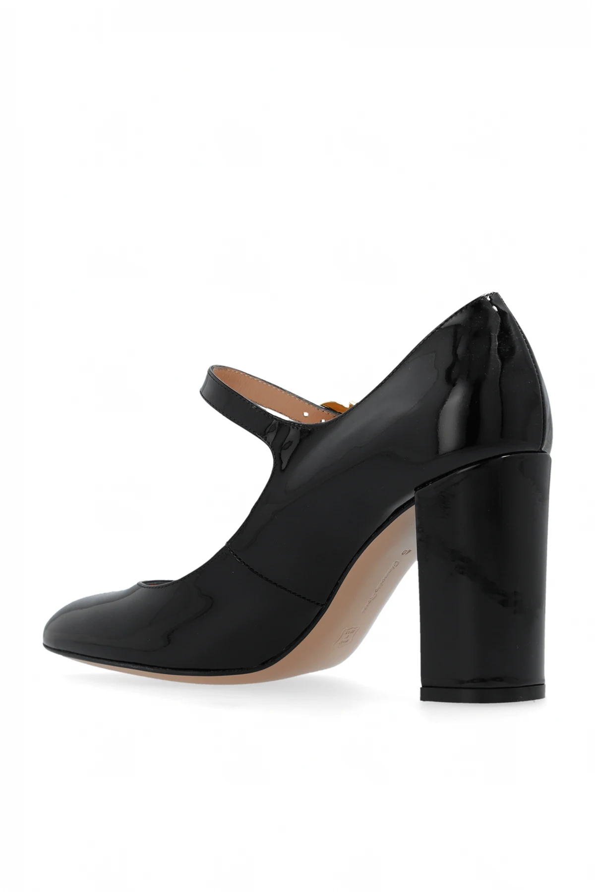 Wir präsentieren die äußerst eleganten Absatzschuhe "Mary" aus der exklusiven Kollektion von Gianvito Rossi. Diese schwarzen, lackierten Absatzschuhe sind der Inbegriff von Klasse und Luxus, ideal zur Bereicherung sowohl formeller als auch weniger formeller Outfits.