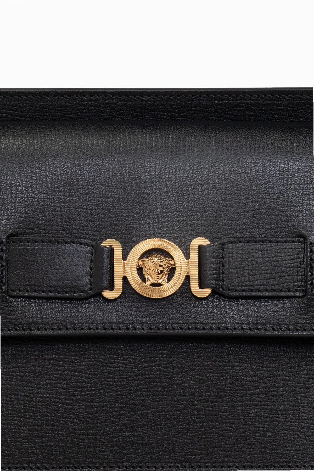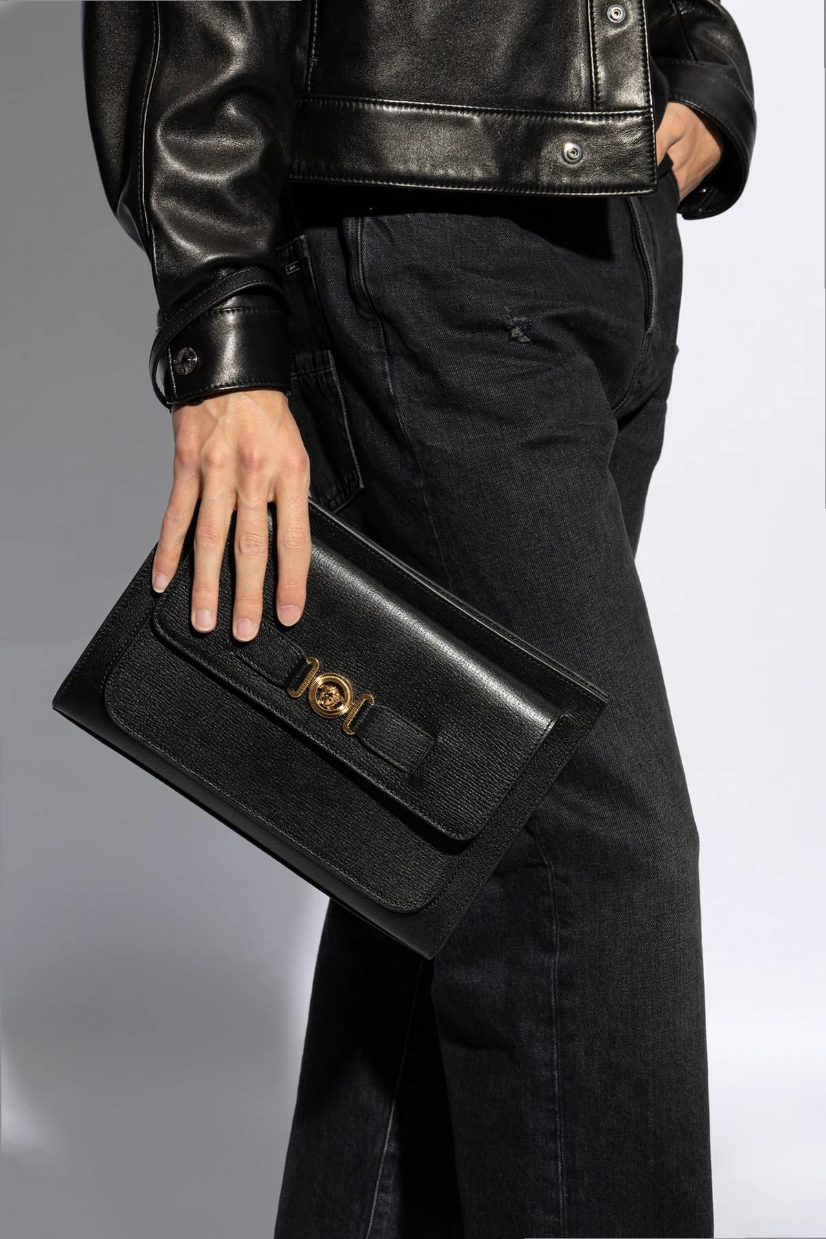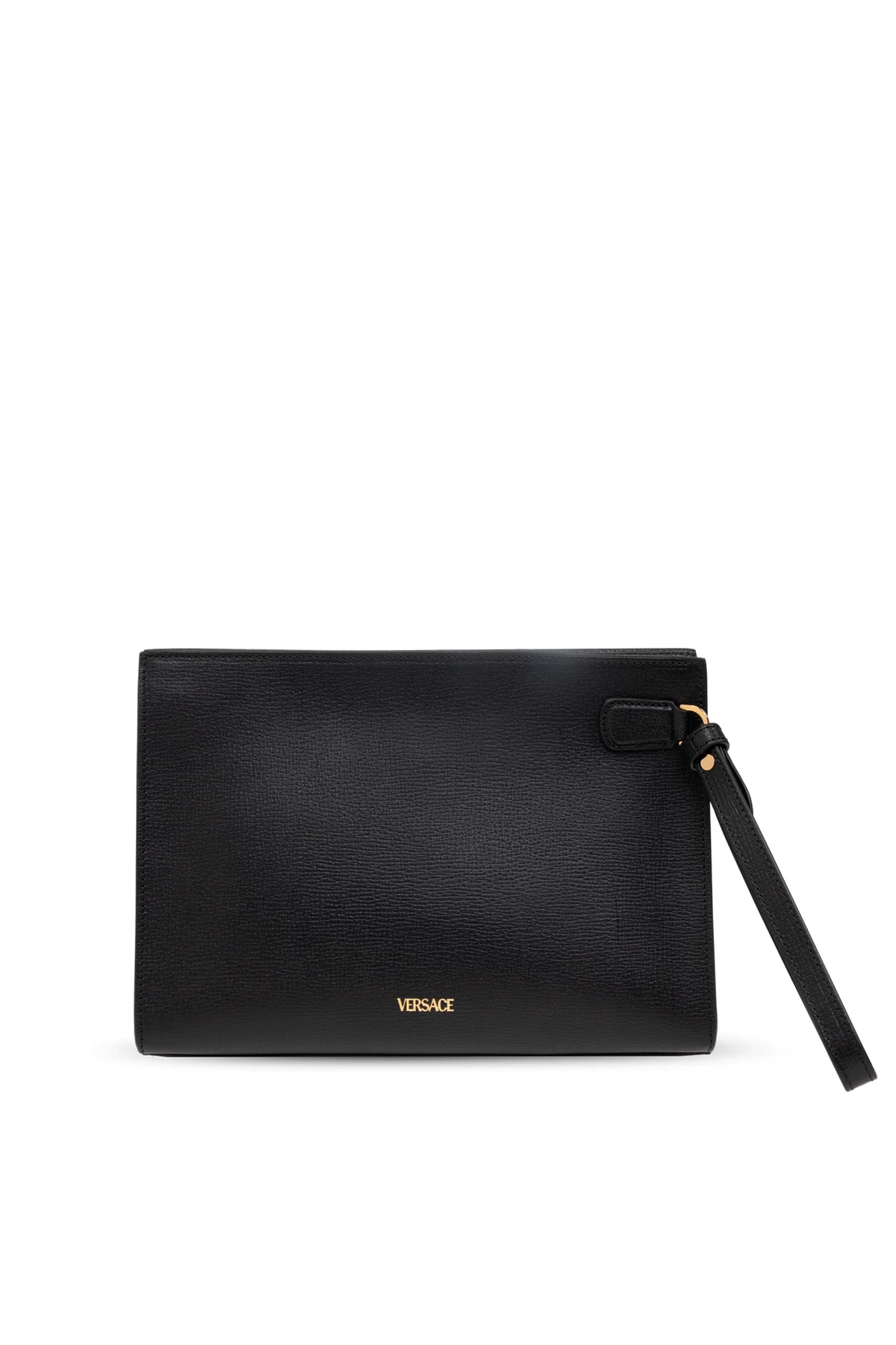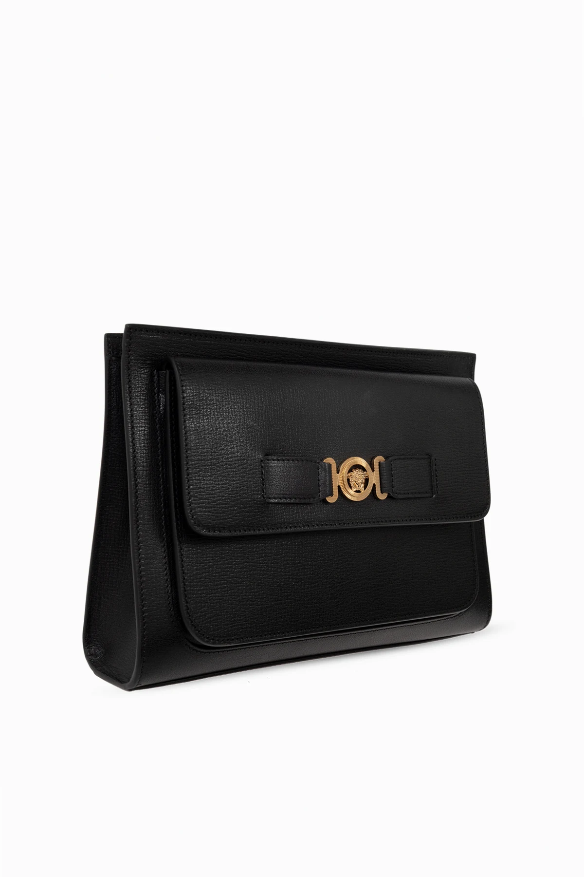 Wir präsentieren Ihnen eine exquisite Handtasche aus Leder des renommierten Designers Versace , die die Quintessenz von Luxus und feinem Geschmack darstellt. Gefertigt aus Leder höchster Qualität mit einer körnigen Textur, präsentiert sie sich in tiefem Schwarz, das ihre elegante, rechteckige Form unterstreicht. Das minimalistische Design harmoniert perfekt mit den klaren, geraden Linien und verleiht diesem Accessoire einen zeitlosen Charakter.