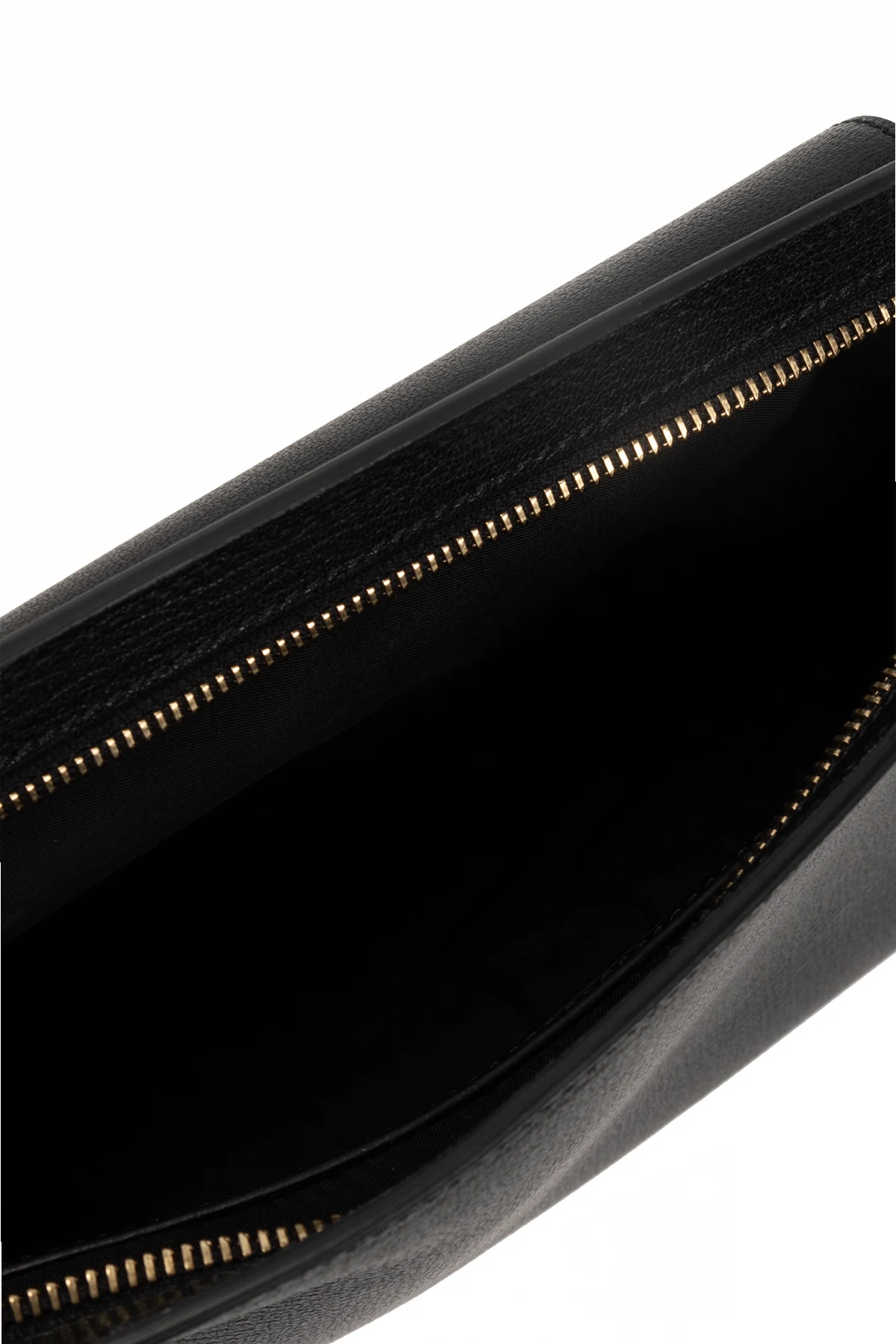 Das charakteristische, goldene Logo des Designers, zentral auf der vorderen Klappe platziert, zieht den Blick auf ein rundes Element, verbunden mit zwei Buchstaben. Es ist nicht nur ein Zeichen von Luxus, sondern auch eine Garantie für Authentizität und Liebe zum Detail. Der Reißverschluss aus Metall sichert die aufbewahrten Gegenstände und zeugt gleichzeitig von Robustheit und hoher Qualität der Verarbeitung.