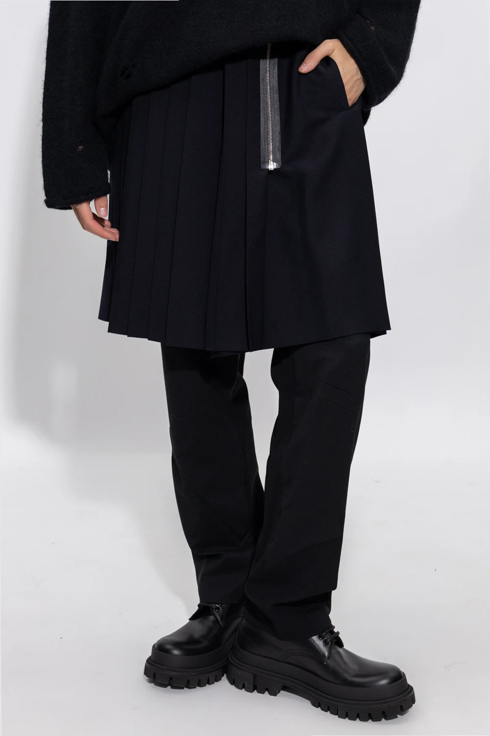 Black skirt from Undercover. Made of mohair, this design features a zip fastening, two slip pockets and pleats at the back.