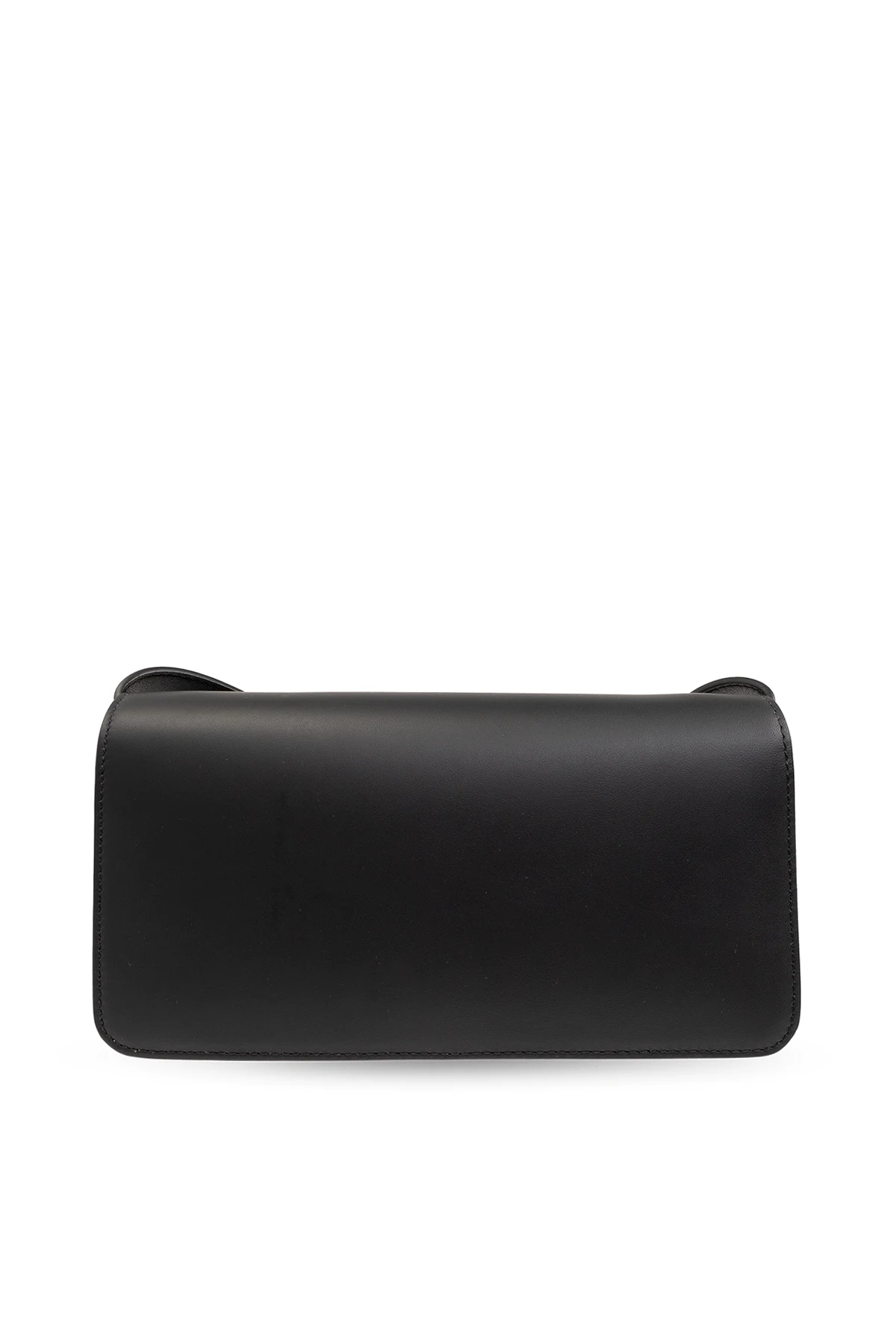 Der verstellbare Riemen, ebenfalls aus schwarzem Leder gefertigt und mit goldenen Elementen versehen, ermöglicht eine Anpassung der Tasche an individuelle Bedürfnisse. Das Innere der Tasche, ausgekleidet mit braunem Material, bietet eine zusätzliche Innentasche, was ihre Funktionalität erhöht. Ein Magnetverschluss schützt den Inhalt der Tasche und erleichtert gleichzeitig den Zugang.
