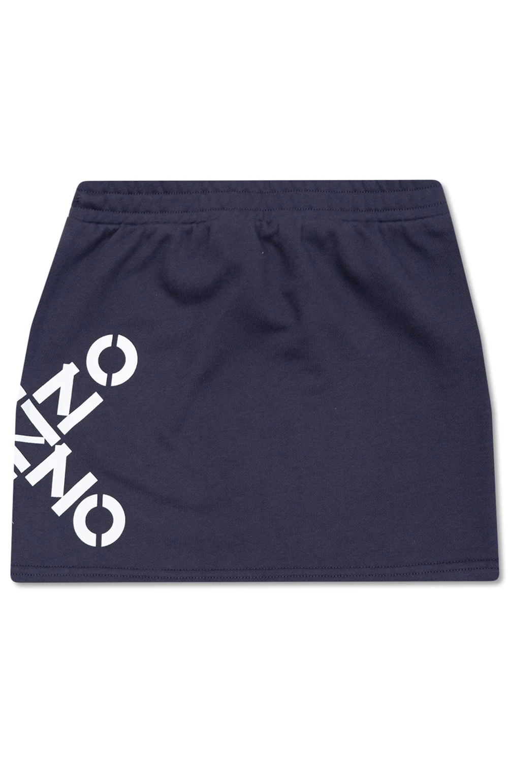 Navy blue and grey sweat skirt from Kenzo Kids. Made of cotton, this style features a drawstring waistband and a white logo print.