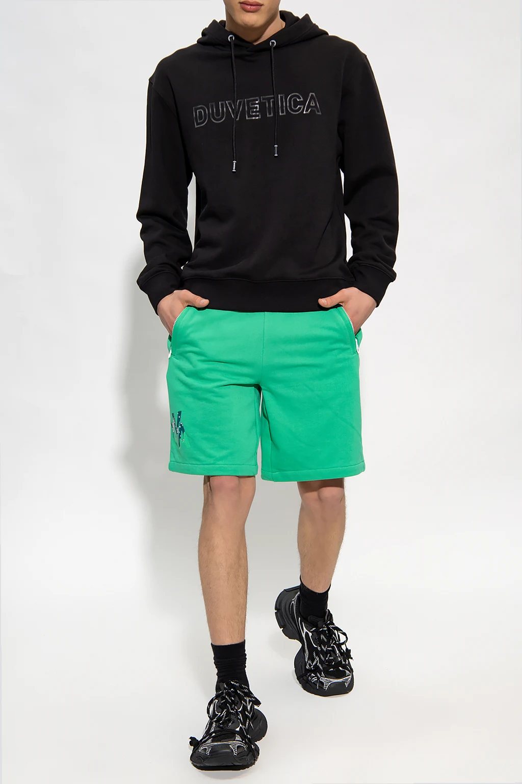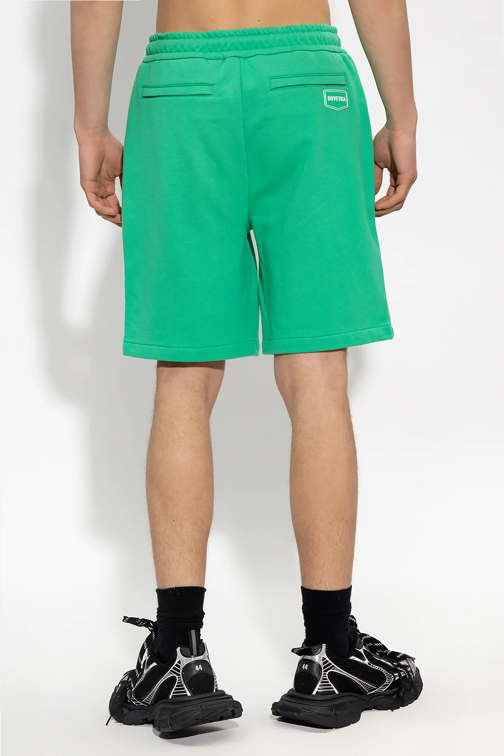 Green ‘Modugno’ shorts from Duvetica. Made of cotton, this pair is complete with an elastic drawstring waistband, rubber logo detail and two zip pockets.