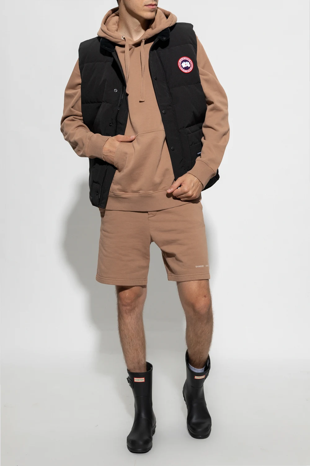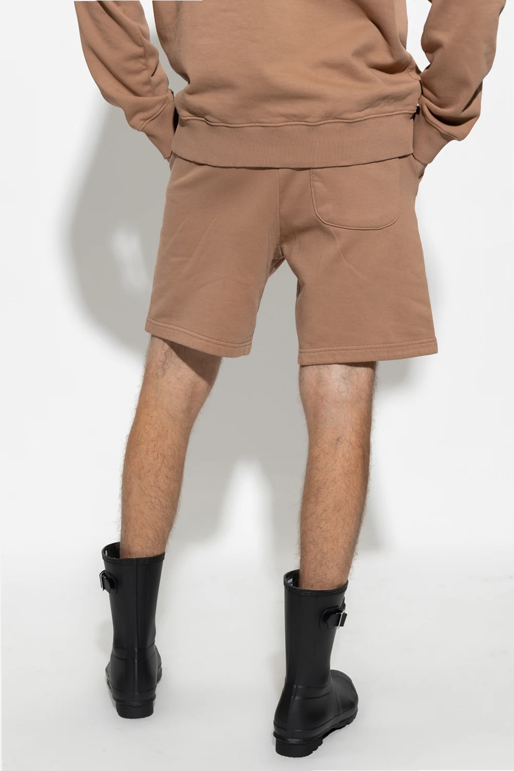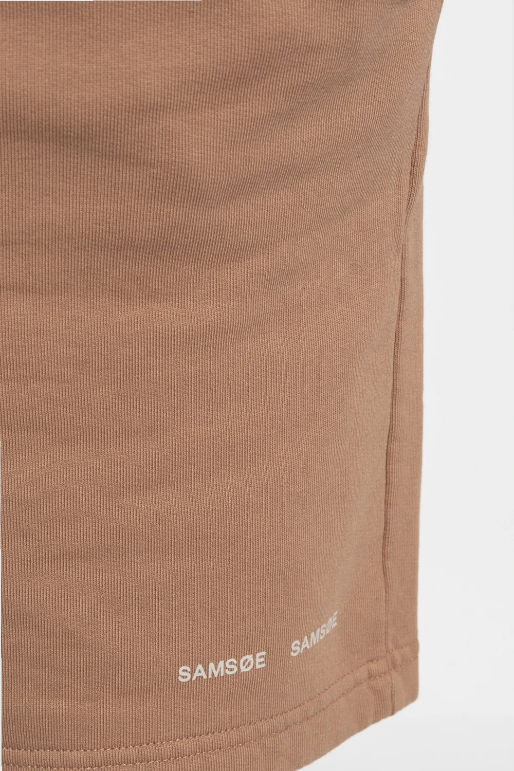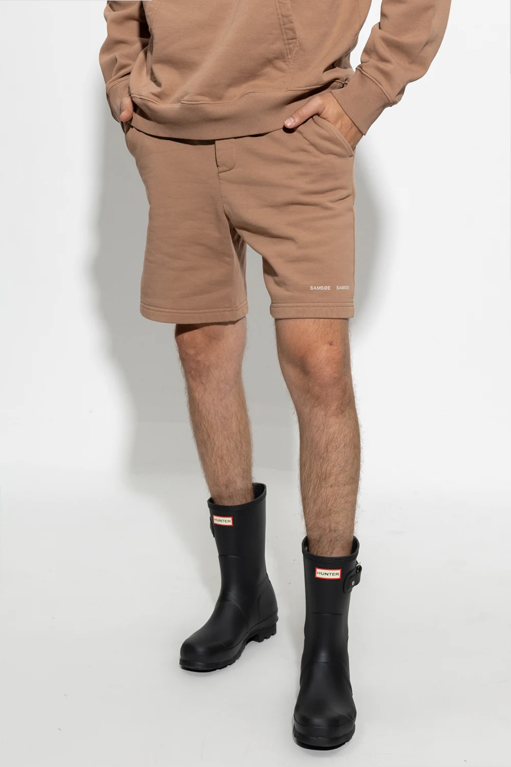 Brown ‘Norsbro’ shorts from Samsoe Samsoe. Crafted from organic cotton, this pair features a drawstring waistband, three slip pockets and a printed white logo.