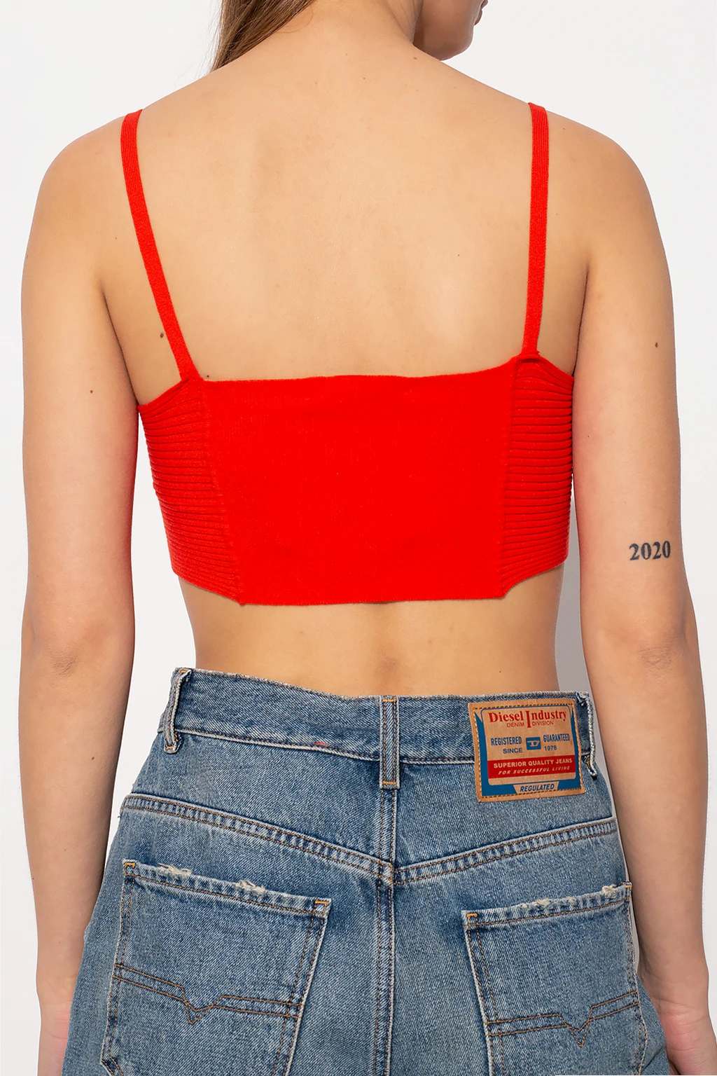 Red slip top from The Attico. Spun from viscose yarns, this sleeveless garment features a distinctive self-tie detail on the front.