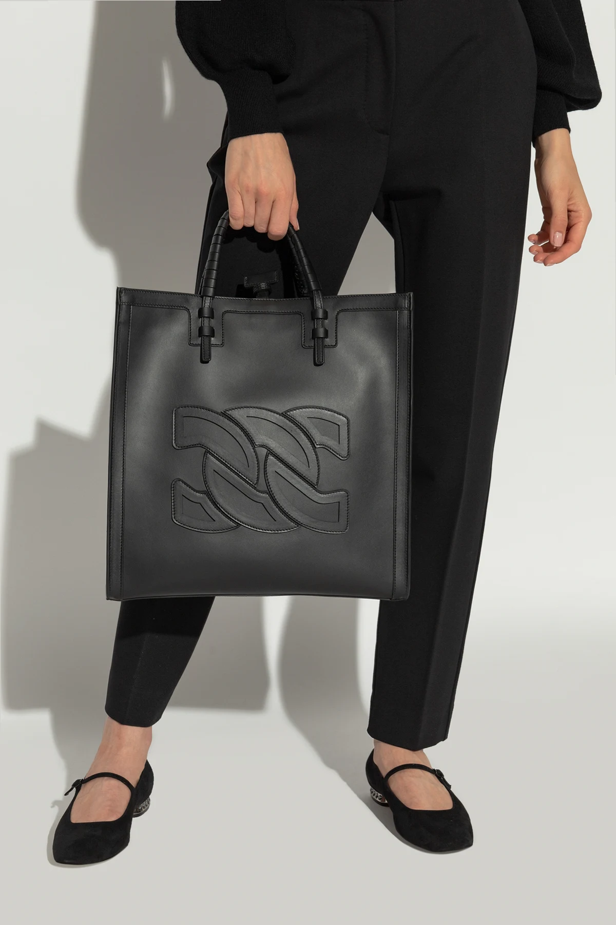 Entdecken Sie das Quintessenz von Eleganz und Funktionalität mit der `Shopper` Tasche von Casadei , die den Gipfel des Designhandwerks darstellt. Aus äußerst glatter, schwarzer Leder gefertigt, fasziniert diese Tasche auf den ersten Blick. Ihr einzigartiger Charakter wird durch das geprägte, mehrschichtige Markenlogo unterstrichen, welches ein ineinander verflochtenes Muster auf der Vorderseite bildet und damit Tiefe und Textur hinzufügt.