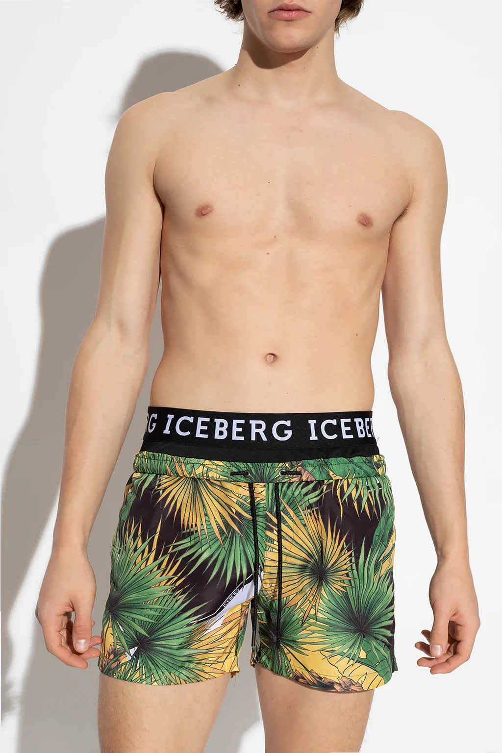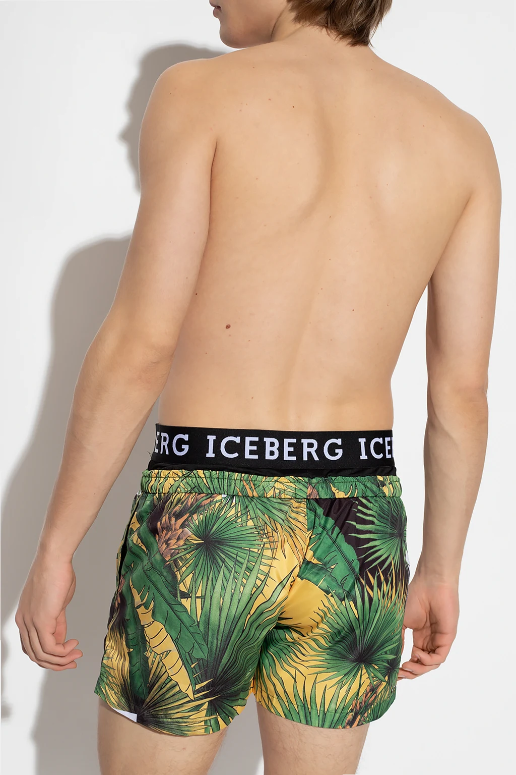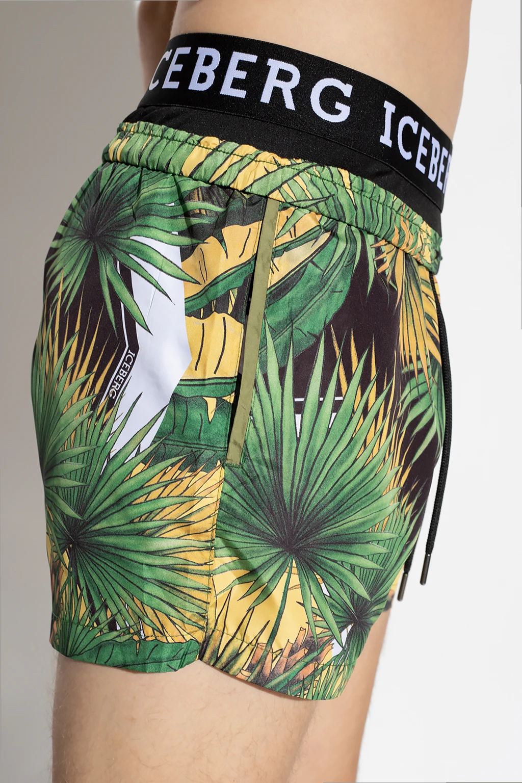 Multicoloured swimming shorts from Iceberg. Embellished with a floral motif, this pair features a branded black waistband cinched with drawcords and two front slip pockets.