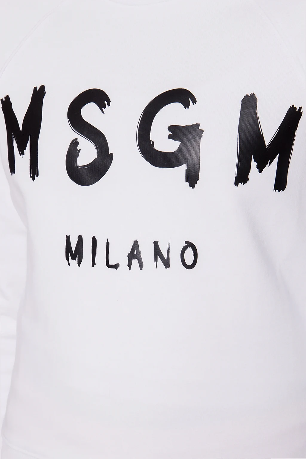 White crewneck sweatshirt from MSGM. Made of cotton. Embellished with a black graphic print with MSGM logo across the front. Finished with ribbed trims.
