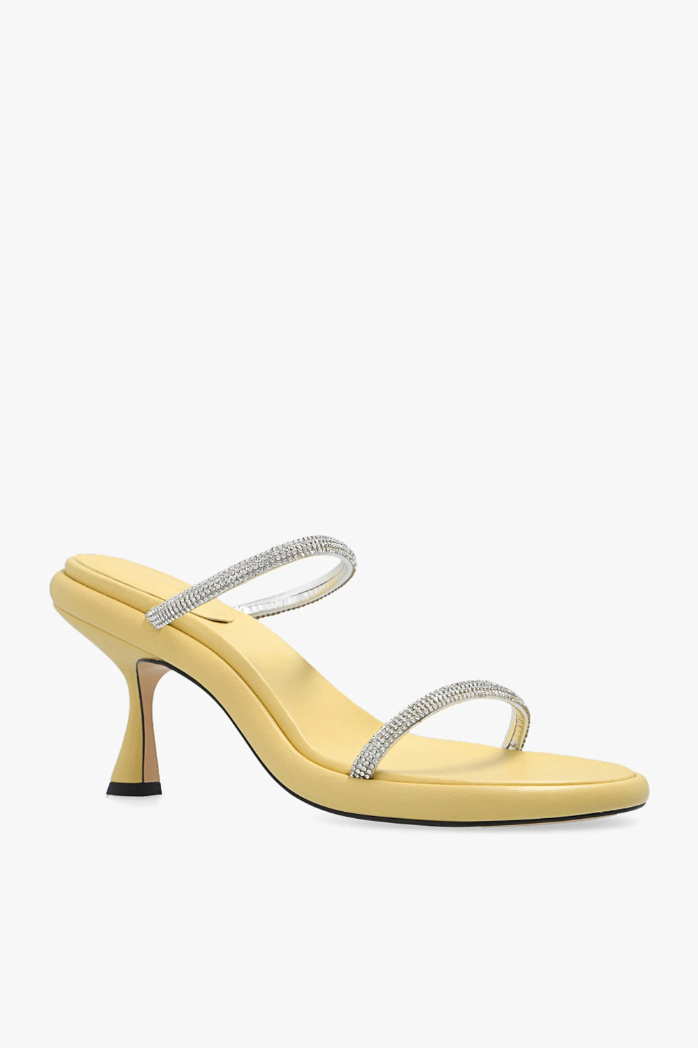 Light yellow ‘June’ mules from Wandler. Made from leather, this model sits on a light beige leather sole and showcases two decorative straps fully clad with glossy rhinestones in silver-tone.