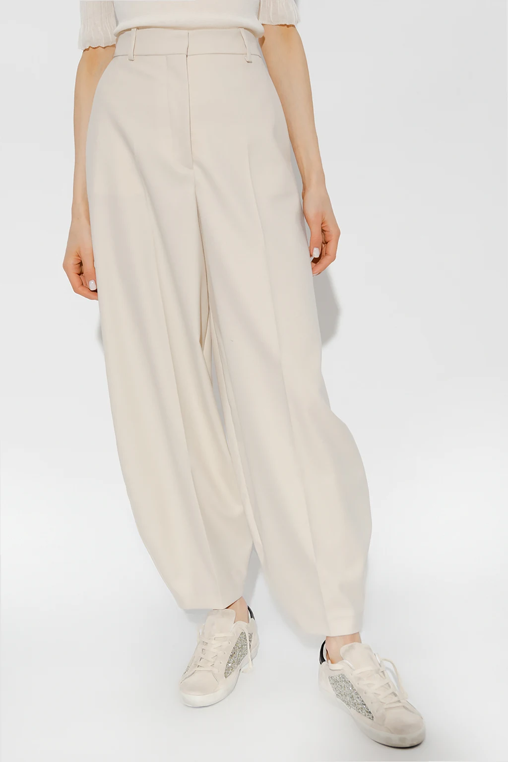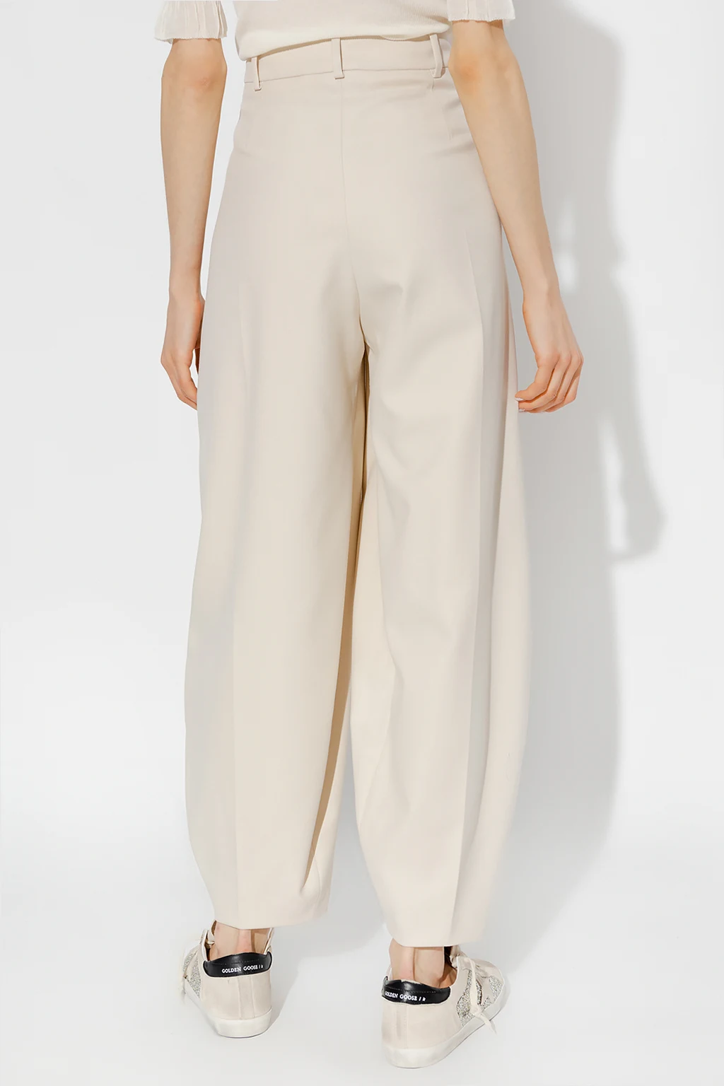 Cream ‘Carlien’ pleat-front trousers from By Malene Birger. Crafted from textured fabric, this pair features a hidden zip fly with a hook and two slip pockets.