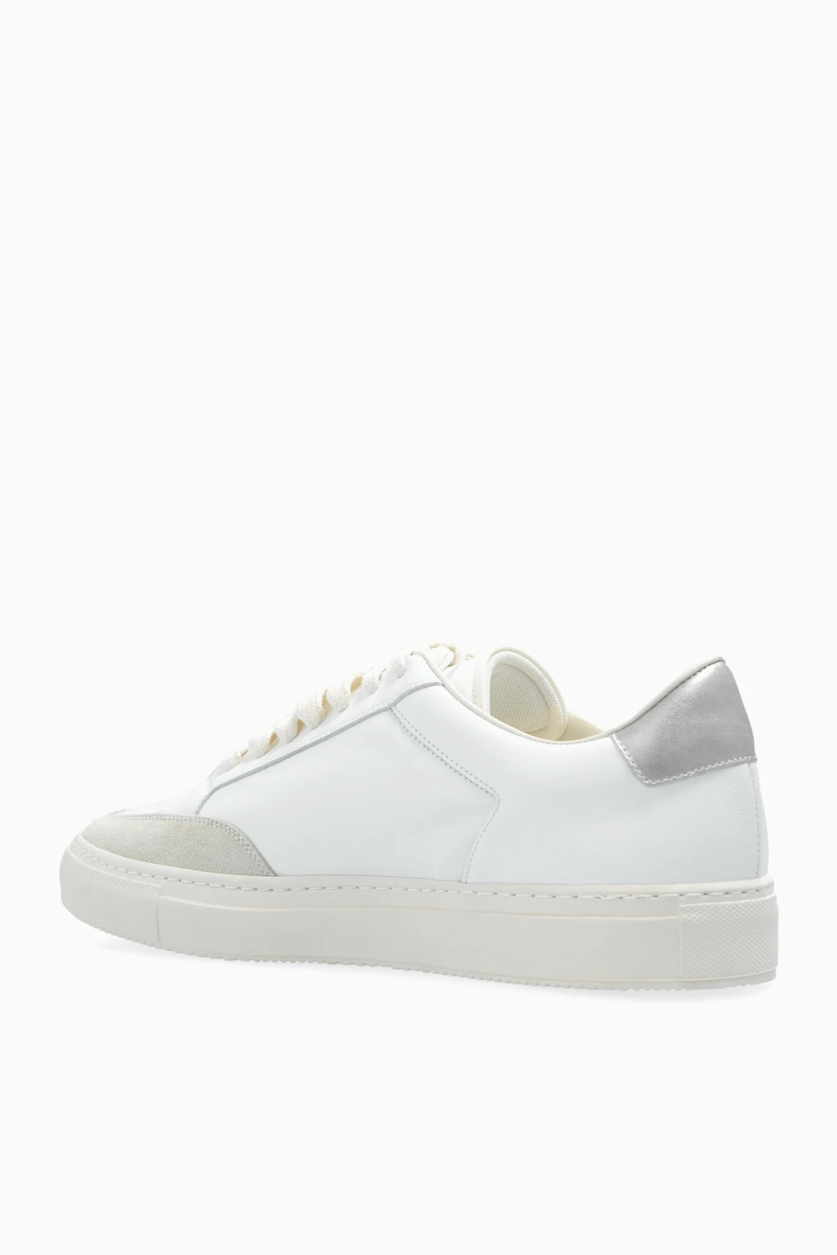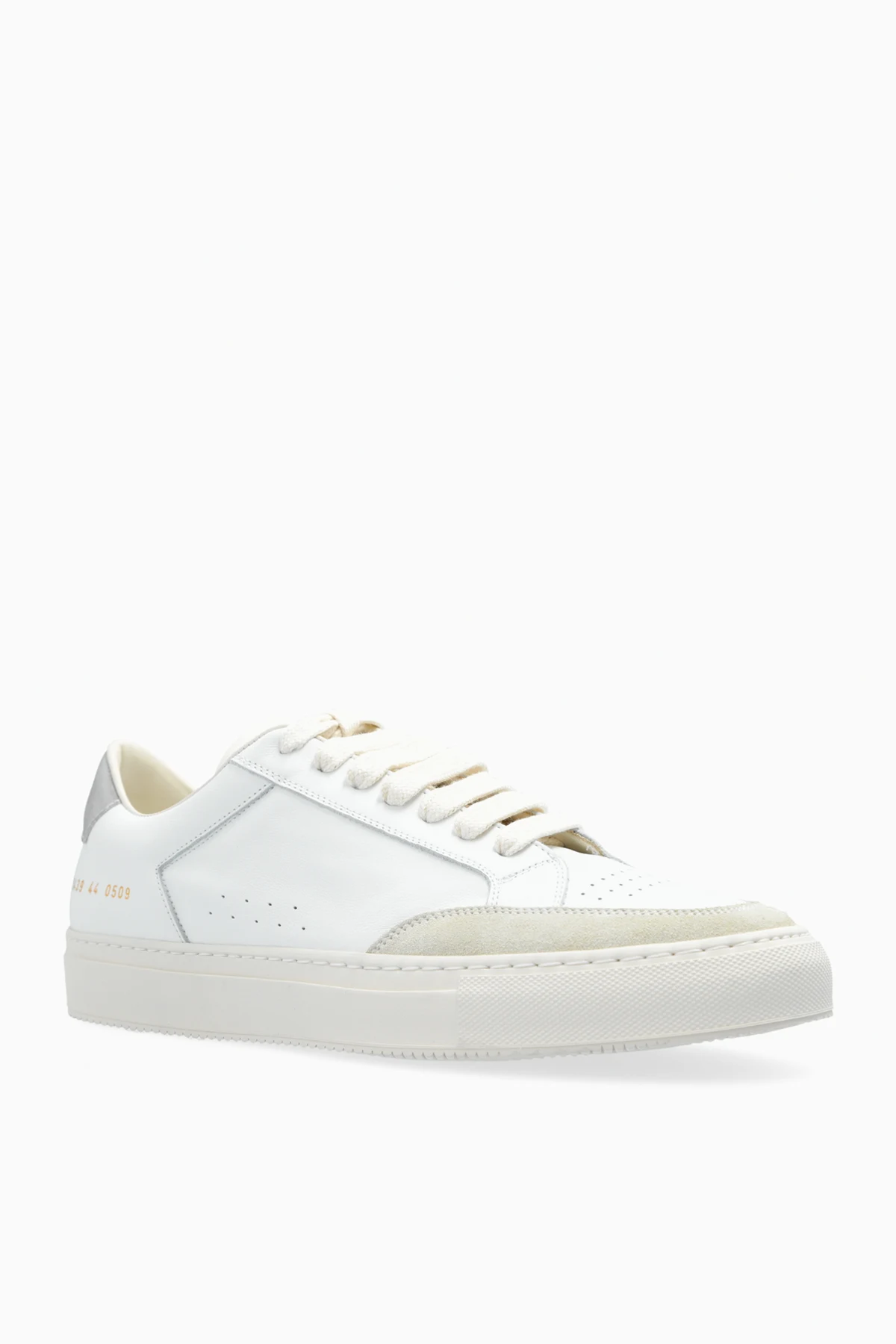 Details wie Perforationen an den Seitenpaneelen für bessere Belüftung, metallische goldene Schriftzüge an der Seite des Schuhs sowie ein innerer goldener Schriftzug mit dem Markennamen "COMMON PROJECTS" verleihen ihnen einen besonderen Charakter. Weiße Schnürsenkel und Rillen an der Sohle für besseren Halt runden das Gesamtbild ab.
