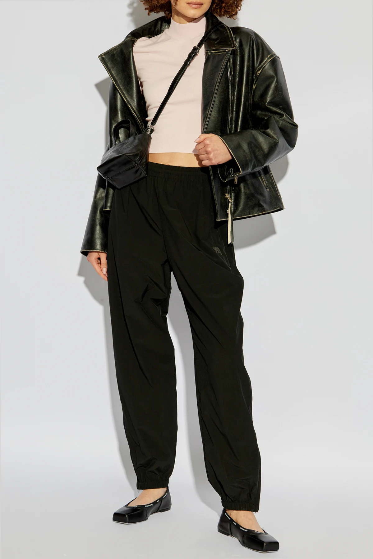 Wir präsentieren Ihnen exklusive Ortlion-Hosen vom geschätzten Designer T by Alexander Wang , die Modernität und Komfort definieren, während sie einen einzigartigen Stil bewahren. Gefertigt aus einer hochwertigen Mischung aus Polyester und Polyamid, beeindrucken diese schwarzen Hosen mit ihrem glatten, leicht glänzenden Finish, das ihnen eine elegante, zugleich sportliche Optik verleiht.