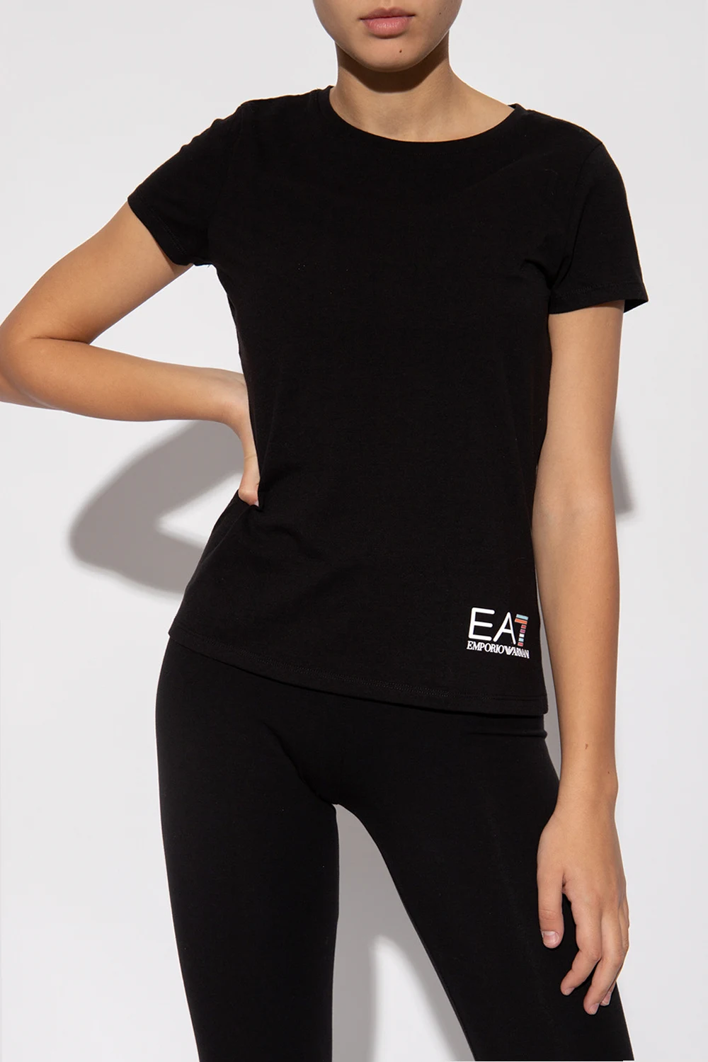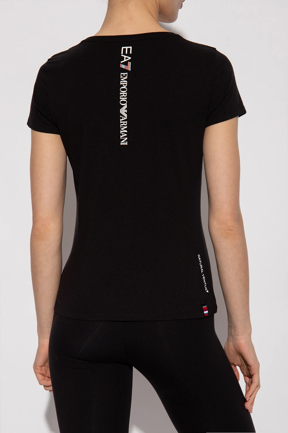 Black crewneck T-shirt from EA7 Emporio Armani. Crafted from cotton, this style showcases a colourful graphic print with the brand's logo.