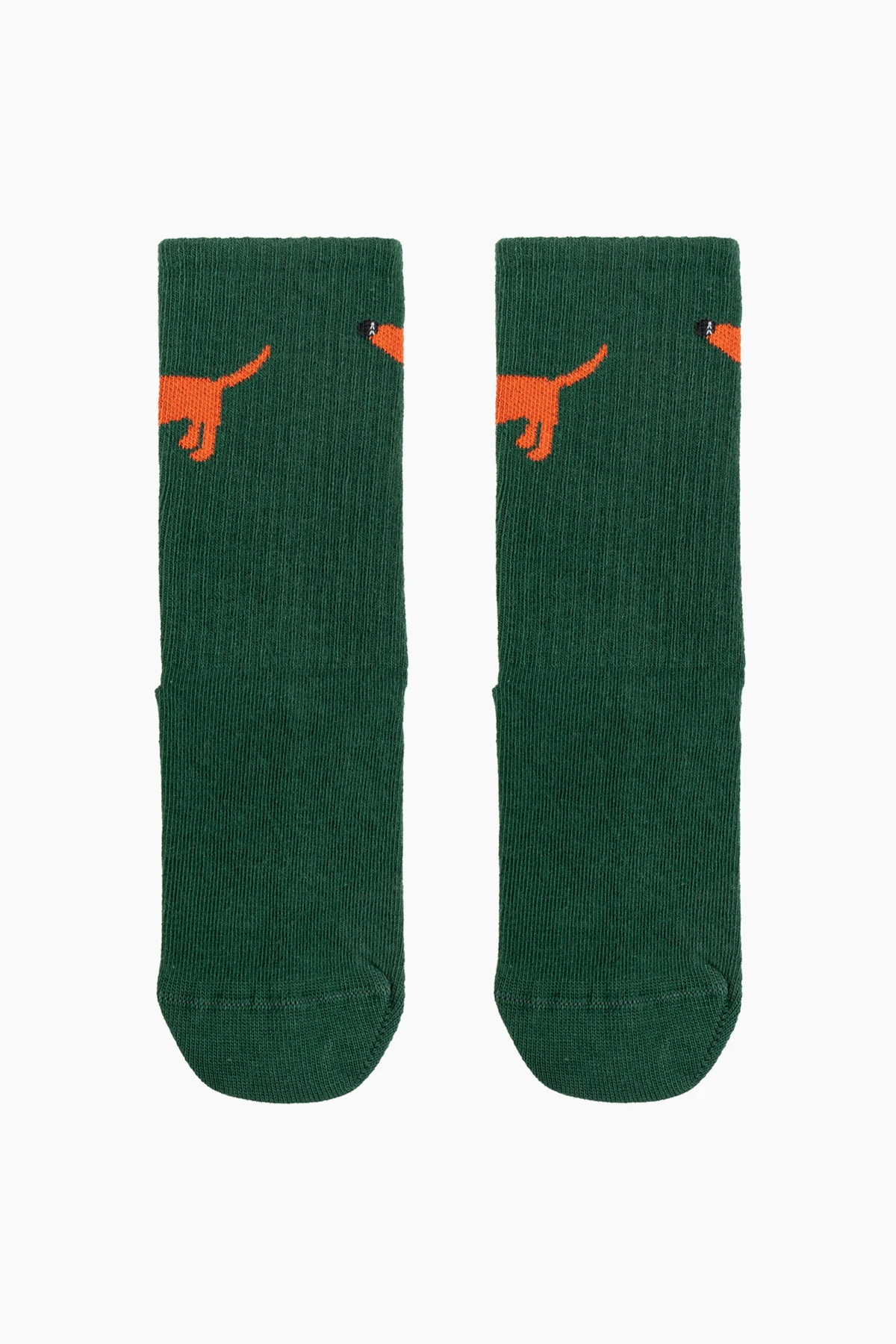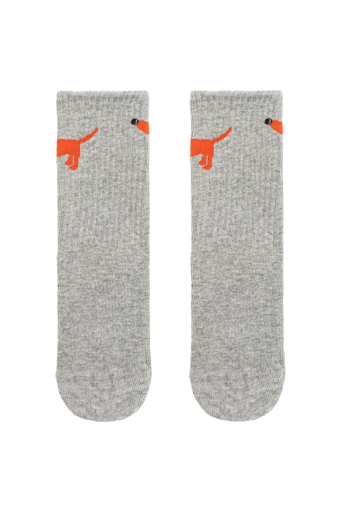 Die Socken sind in zwei raffinierten Farben erhältlich: grün und grau. Jedes Paar ist mit einem charmanten Muster eines orangefarbenen Hundes mit schwarzer Nase verziert, das ihnen einen unverwechselbaren Charme verleiht. Das Muster befindet sich auf dem oberen Teil der Socken, was ihre Eleganz unterstreicht.