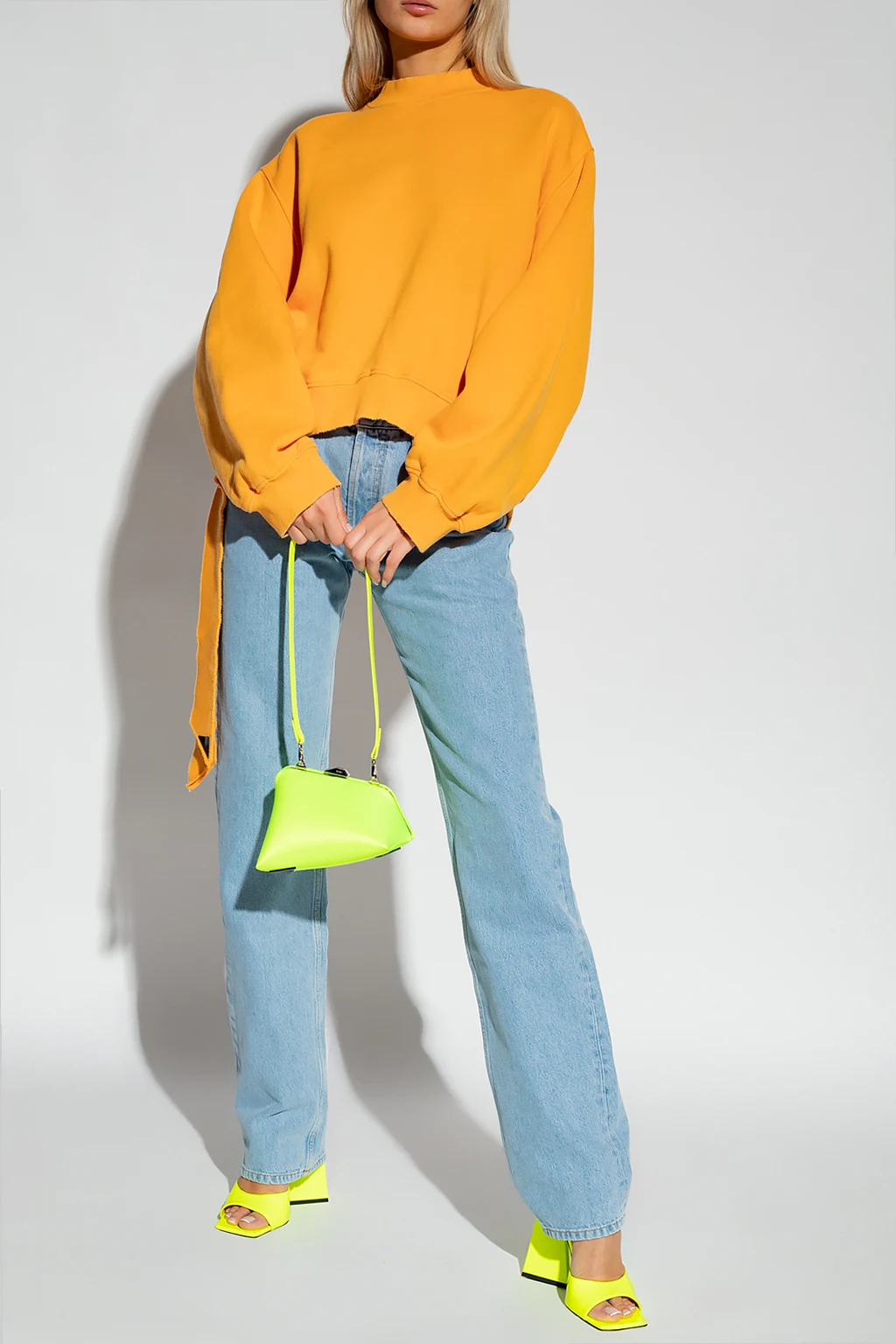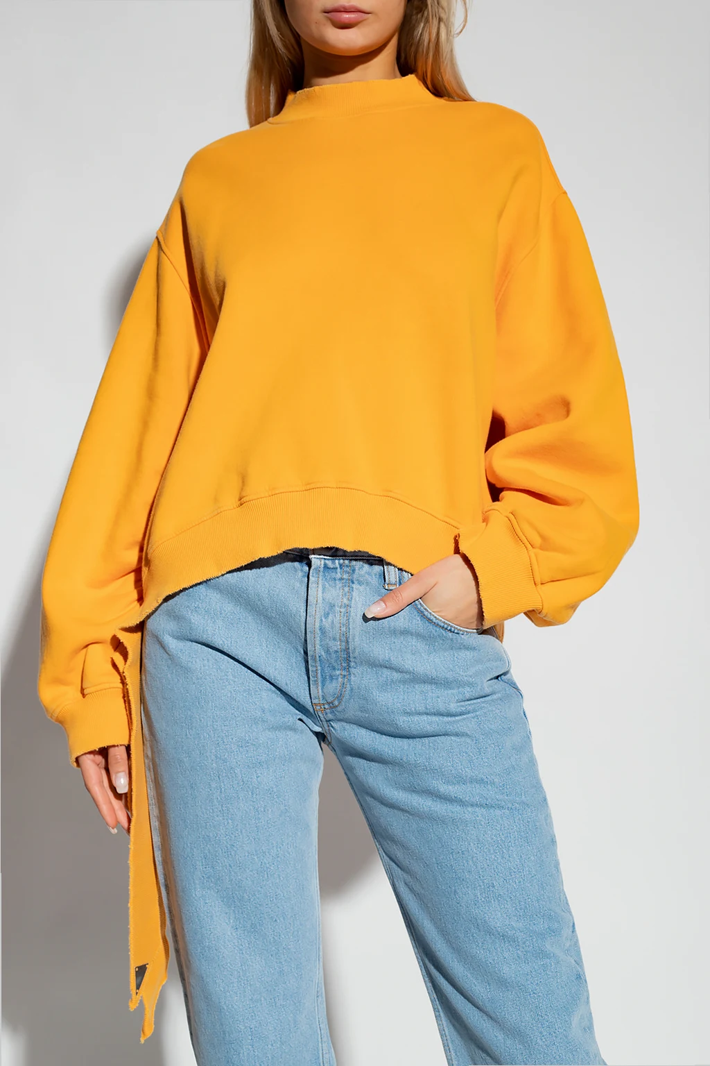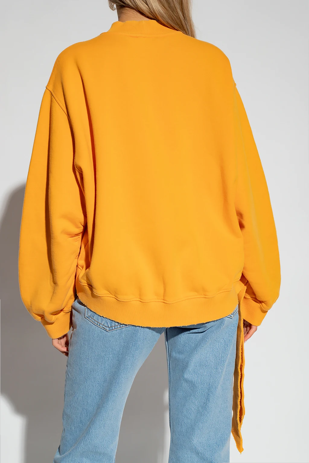 Orange ‘Pet’ oversize sweatshirt from The Attico. Crafted from cotton, this garment features a round neck, long sleeves, ribbed edges, vintage effect and drawstring hem with a metal logo appliqué.
