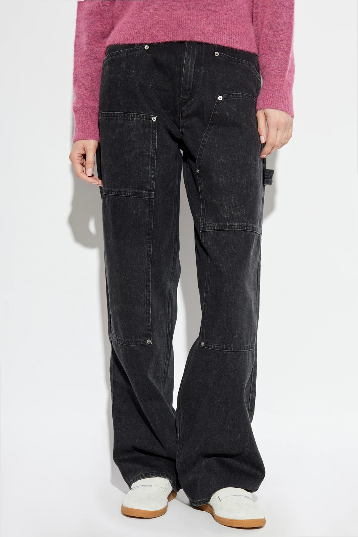 Wir präsentieren die Jeans "Ophra" von der renommierten Marke Marant Etoile . Diese schwarzen Jeans sind der Inbegriff von Eleganz und Klasse und passen perfekt in die modernen Modekanons. Gefertigt aus robustem Denim, der zu 100% aus Baumwolle besteht, bieten diese Hosen eine schlichte Schnittführung mit weiten Beinen, die Komfort und Stil garantieren.