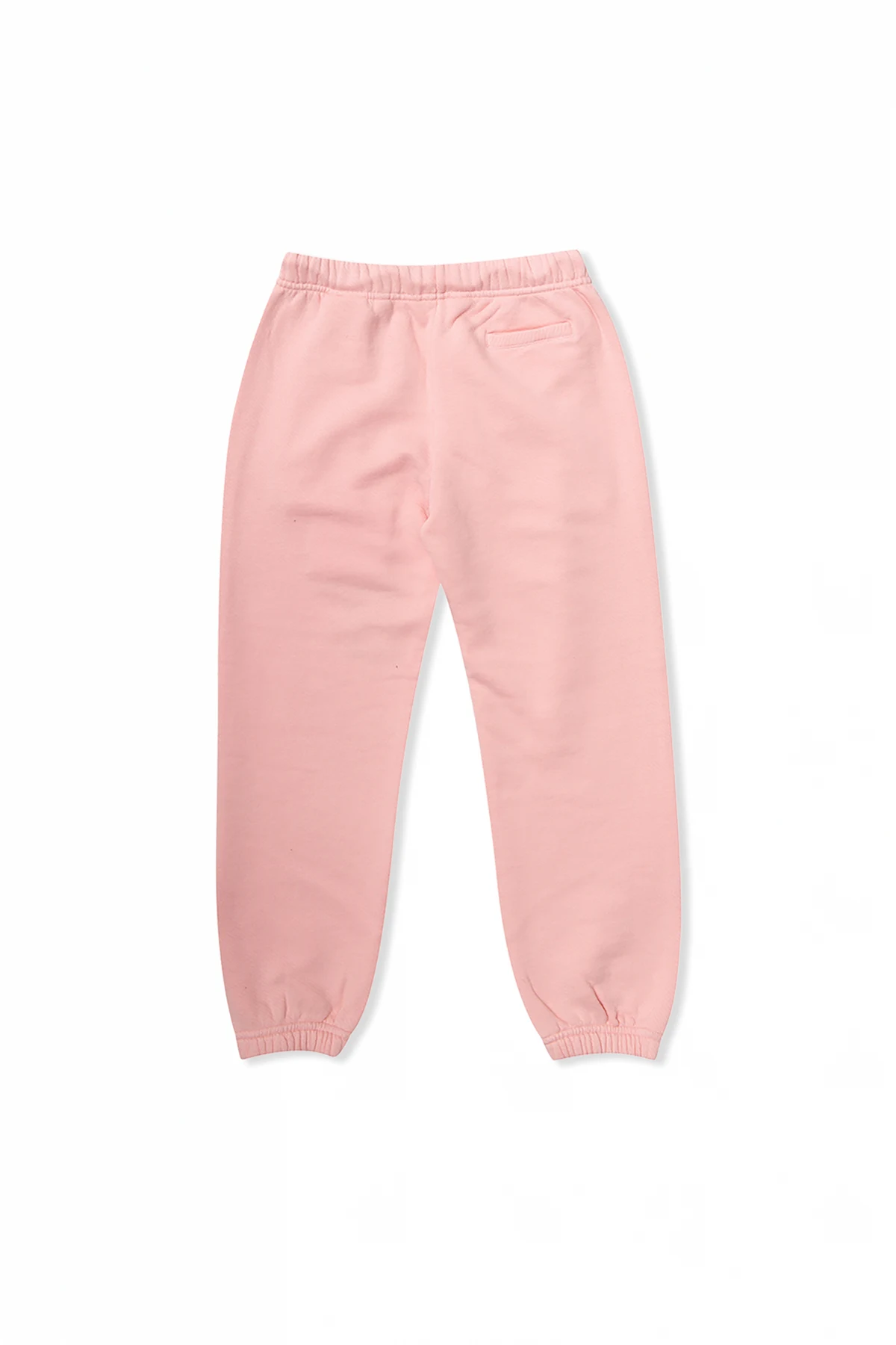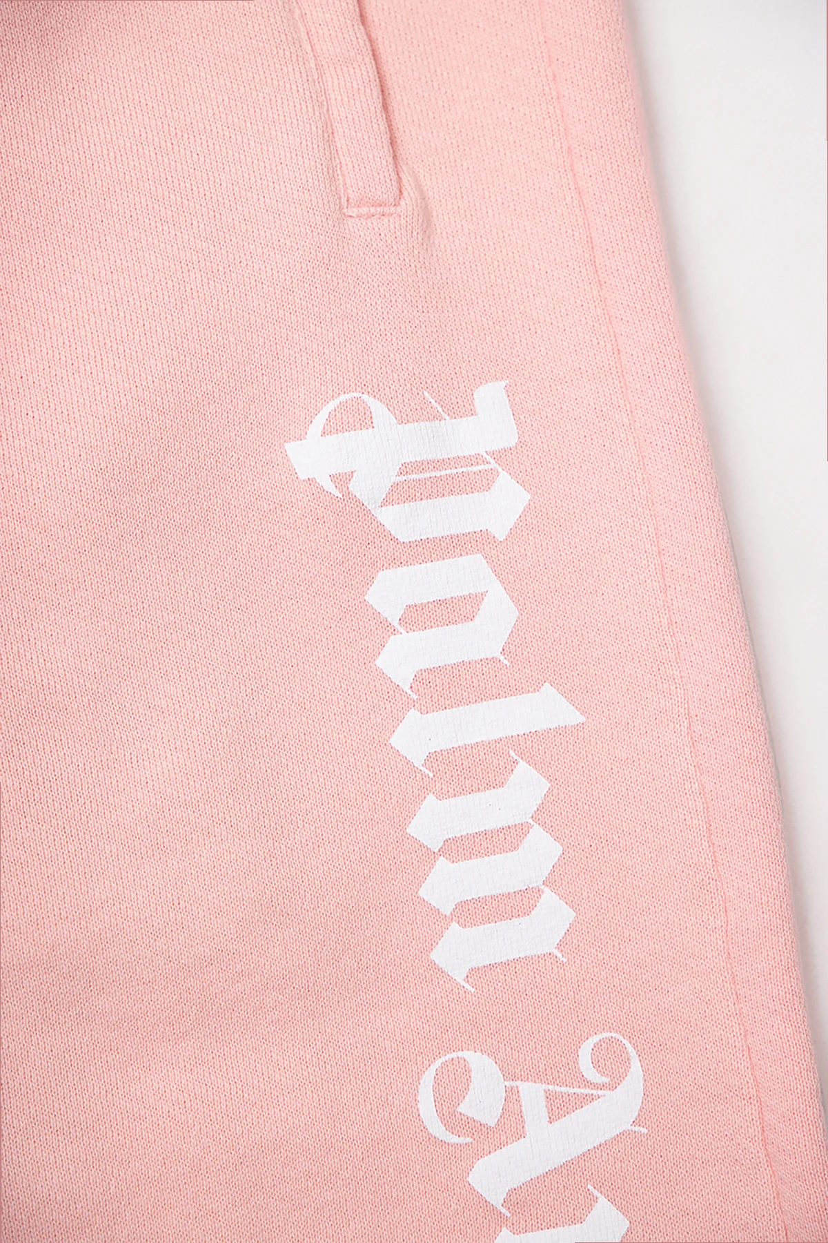 Light pink sweatpants from Palm Angels Kids. Made of cotton, this pair features an elasticated waistband with a drawstring fastening, three slip pockets, ribbed cuffs and a white logo print on the leg.