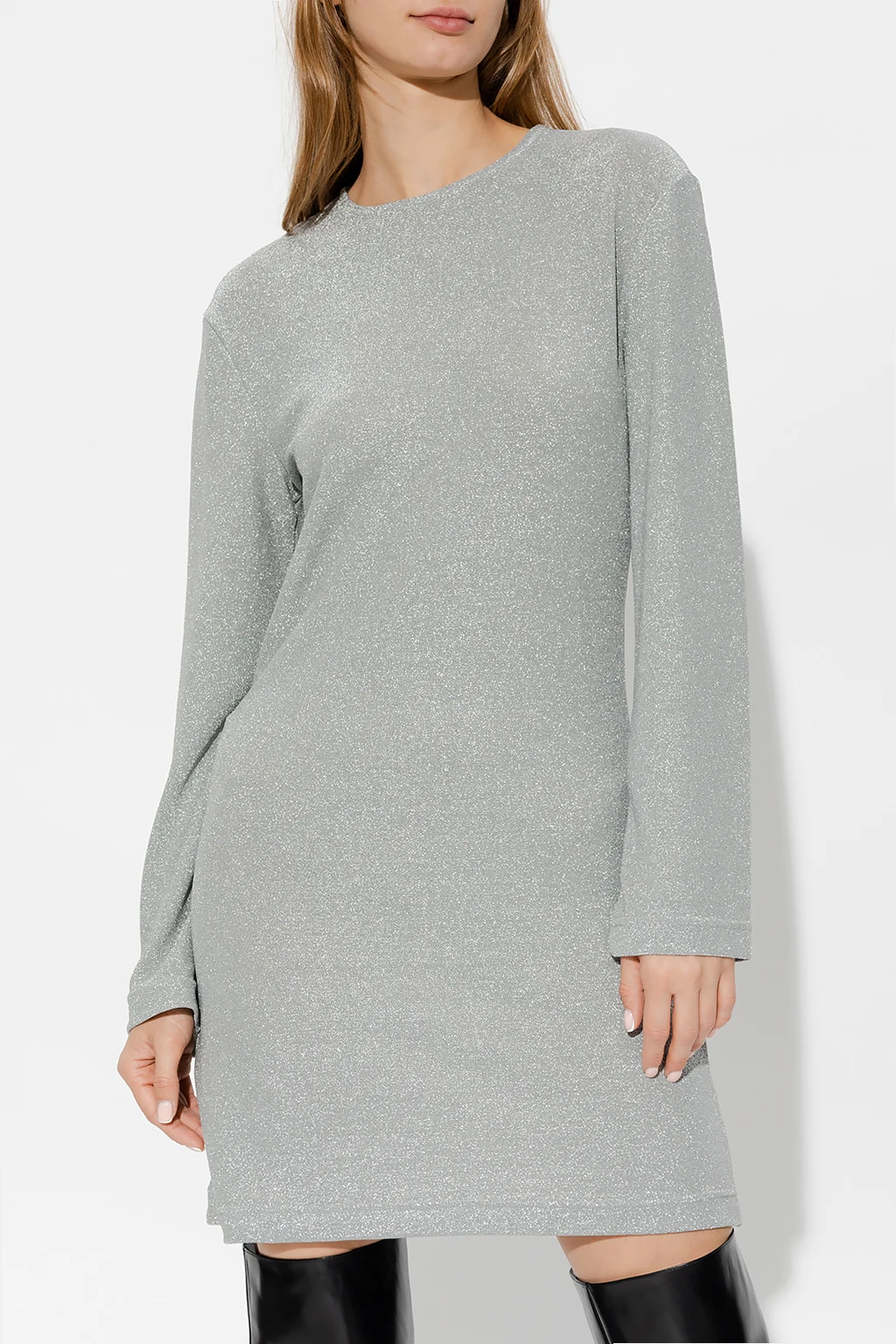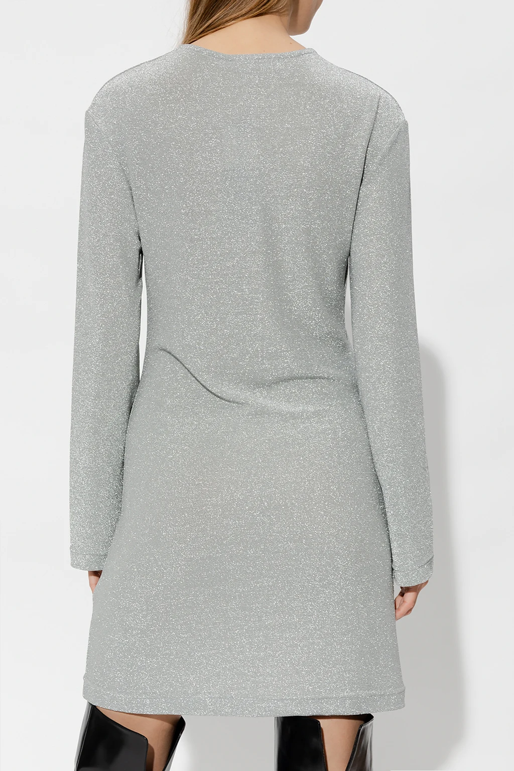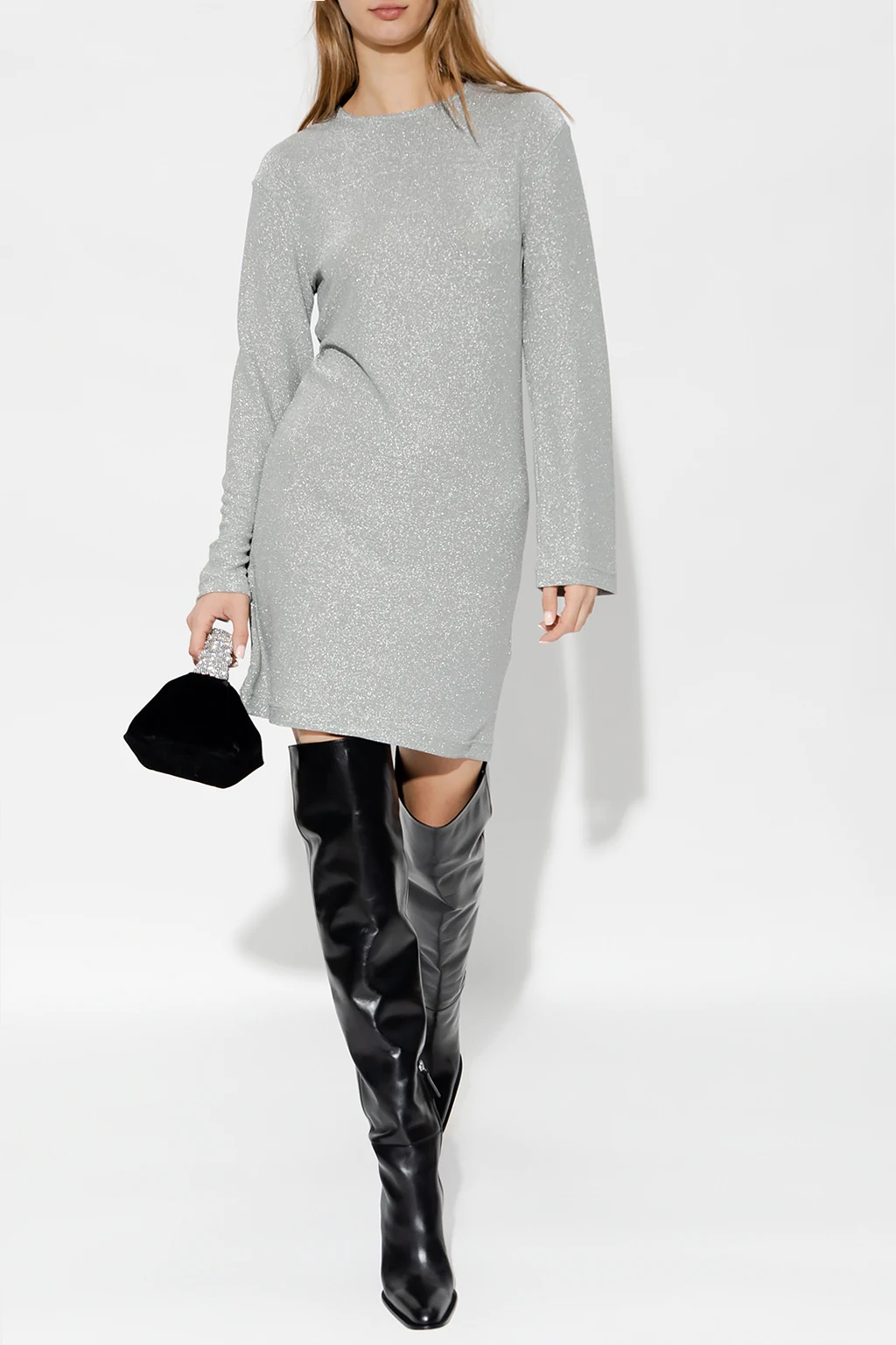 Silver-tone ‘Zenia’ dress from Samsoe Samsoe. Made of fabric with metallic fibres, this design features a round neck and long flared sleeves.