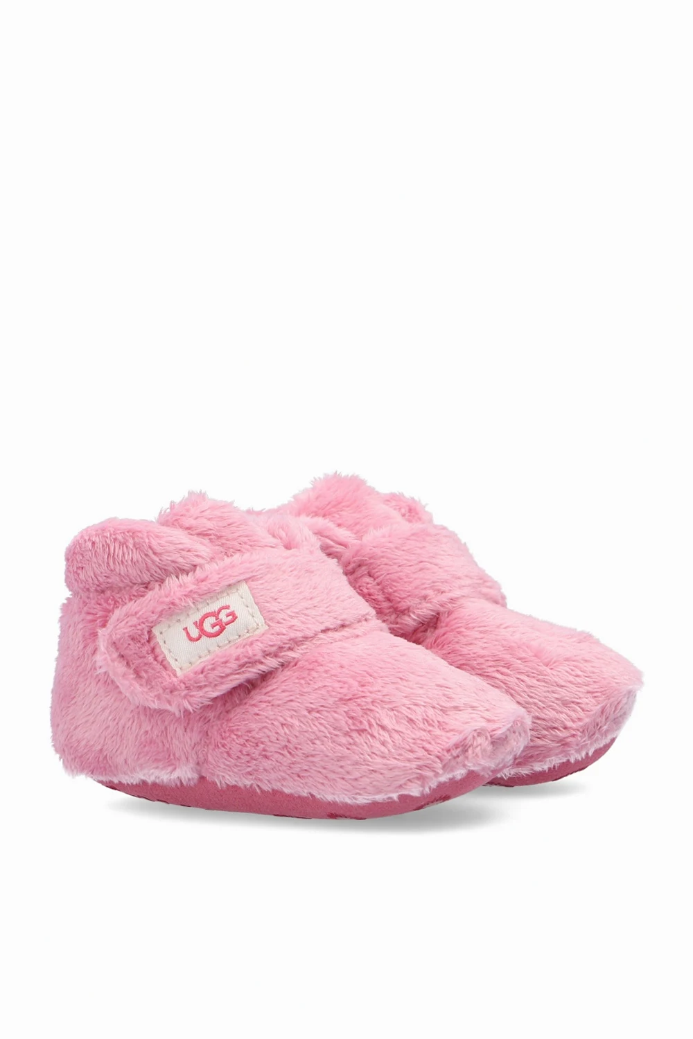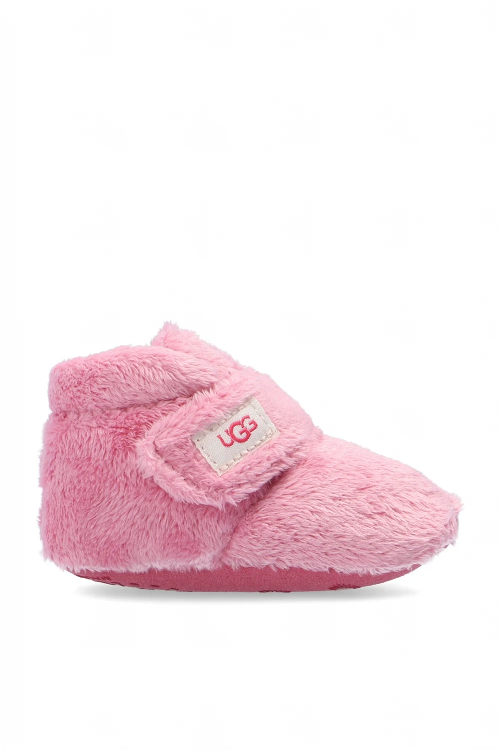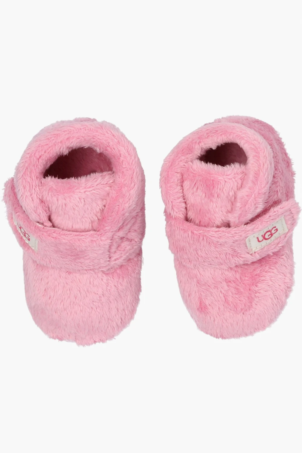Pink 'Bixbee' boots from UGG Kids. Shrouded in soft fur-like terry cloth fabric, this pair features velcro fastener, matching sole, cream logo patch and it also comes with a baby blanket.