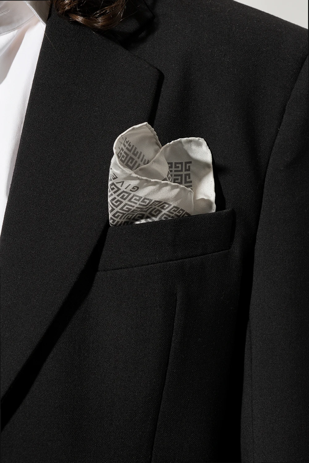 Grey pocket square from Givenchy. Made of silk, this item showcases the brand's ‘4G’ monogram.