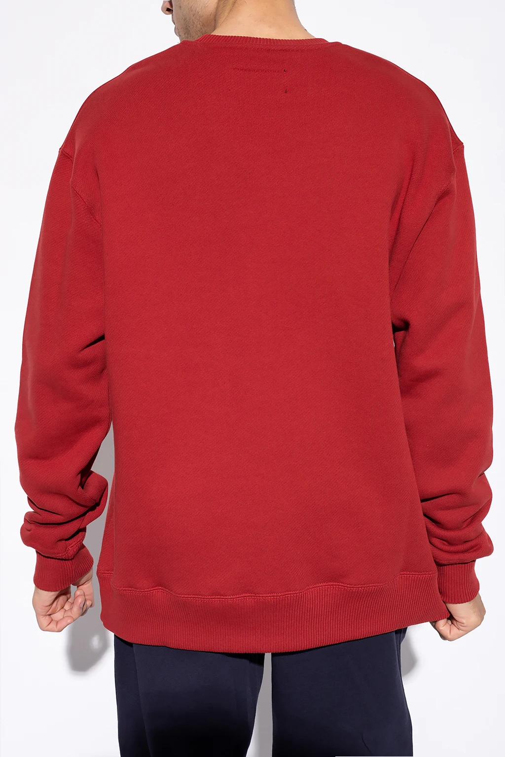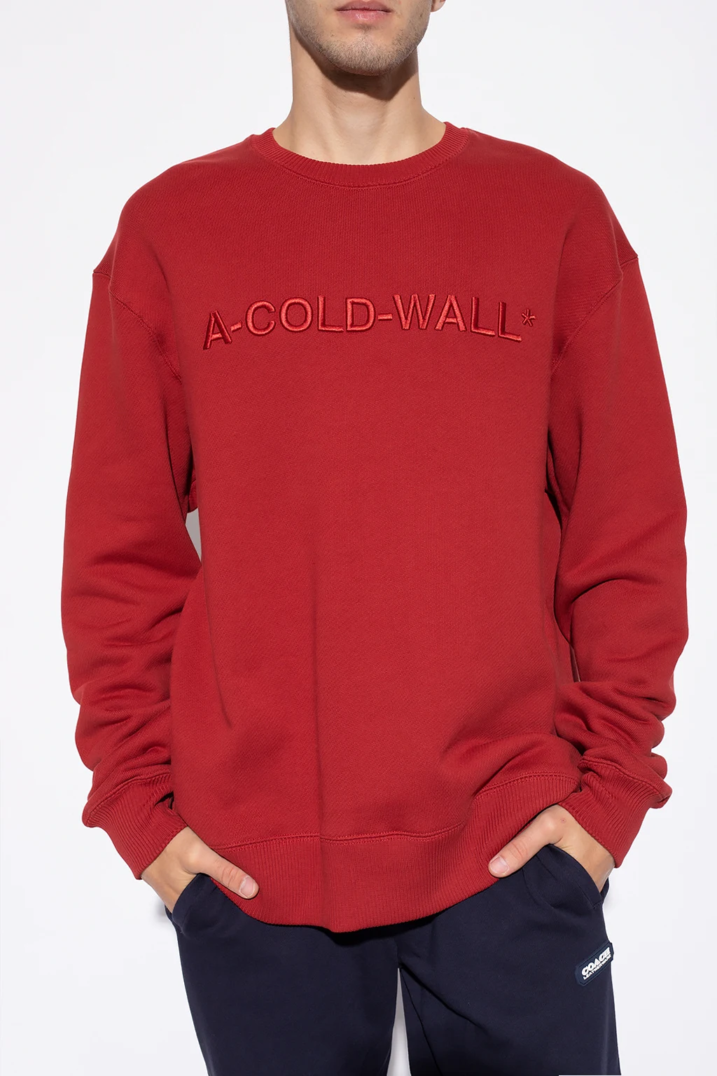 Maroon crewneck sweatshirt from A Cold Wall. Crafted from cotton, this style showcases an embroidered logo on the front and ribbed trims on the bottom hem and cuffs.