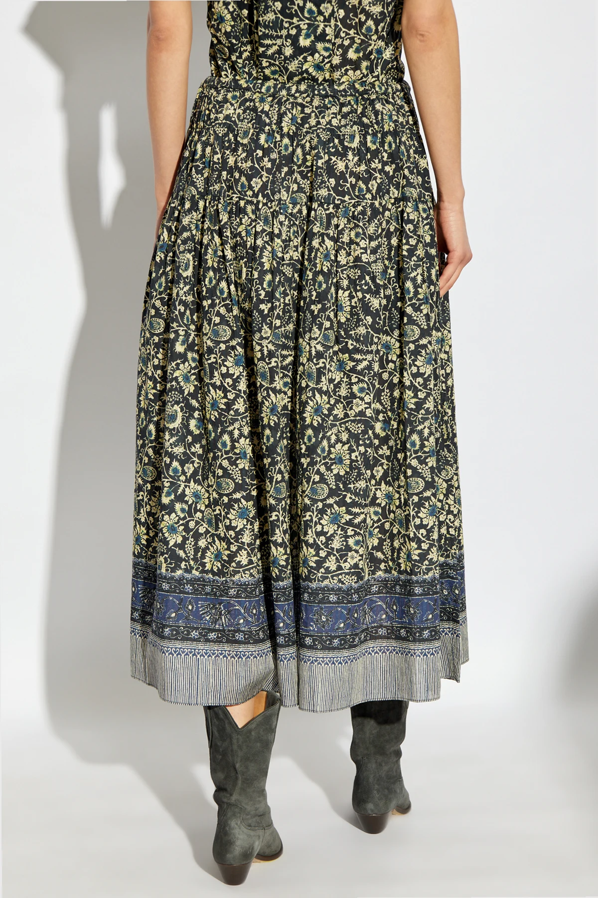 Der Midi-Schnitt, der nach unten hin ausgestellt ist, verleiht der Silhouette Leichtigkeit und Volumen und betont die Eleganz jeder Kreation. Aus leichter Baumwolle und Viskose gefertigt, ist der Rock ideal für wärmere Jahreszeiten und bietet Komfort und Atmungsaktivität.