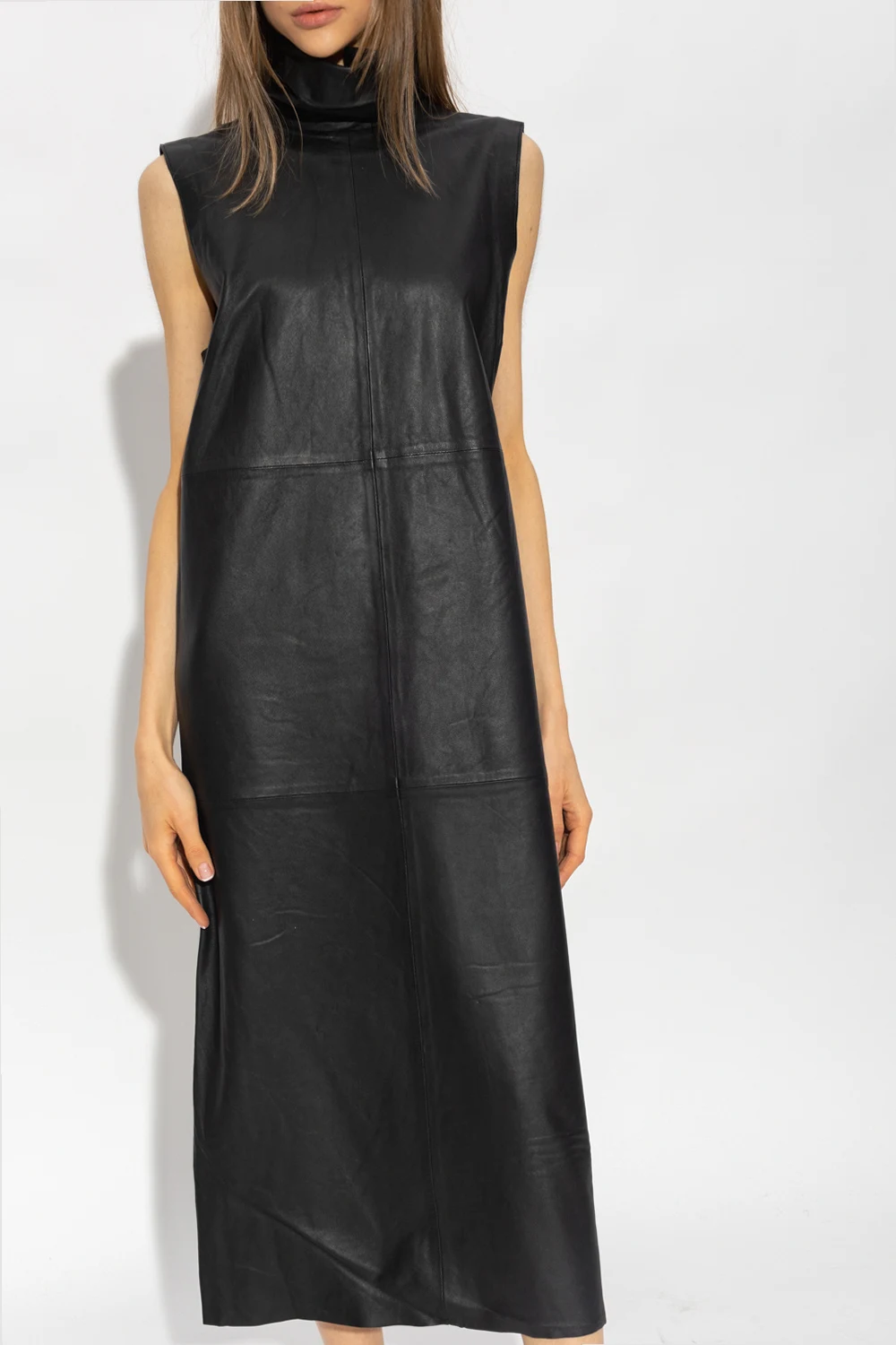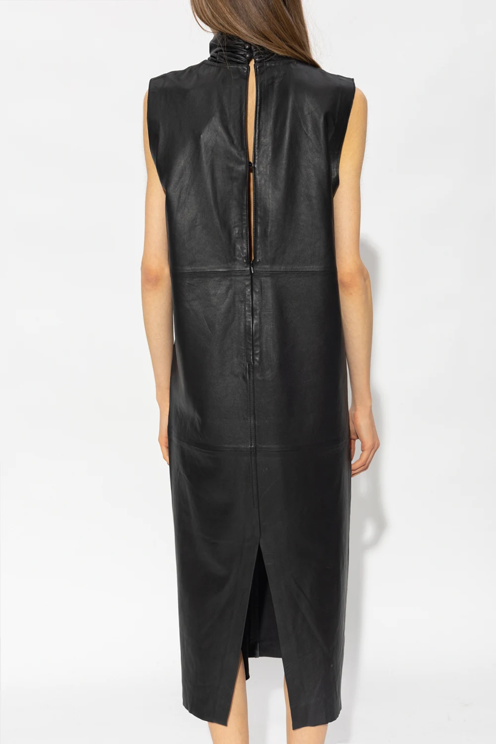 Black ‘Fever’ dress from Notes Du Nord. Crafted from lamb leather, this style features button fastenings and a back opening.