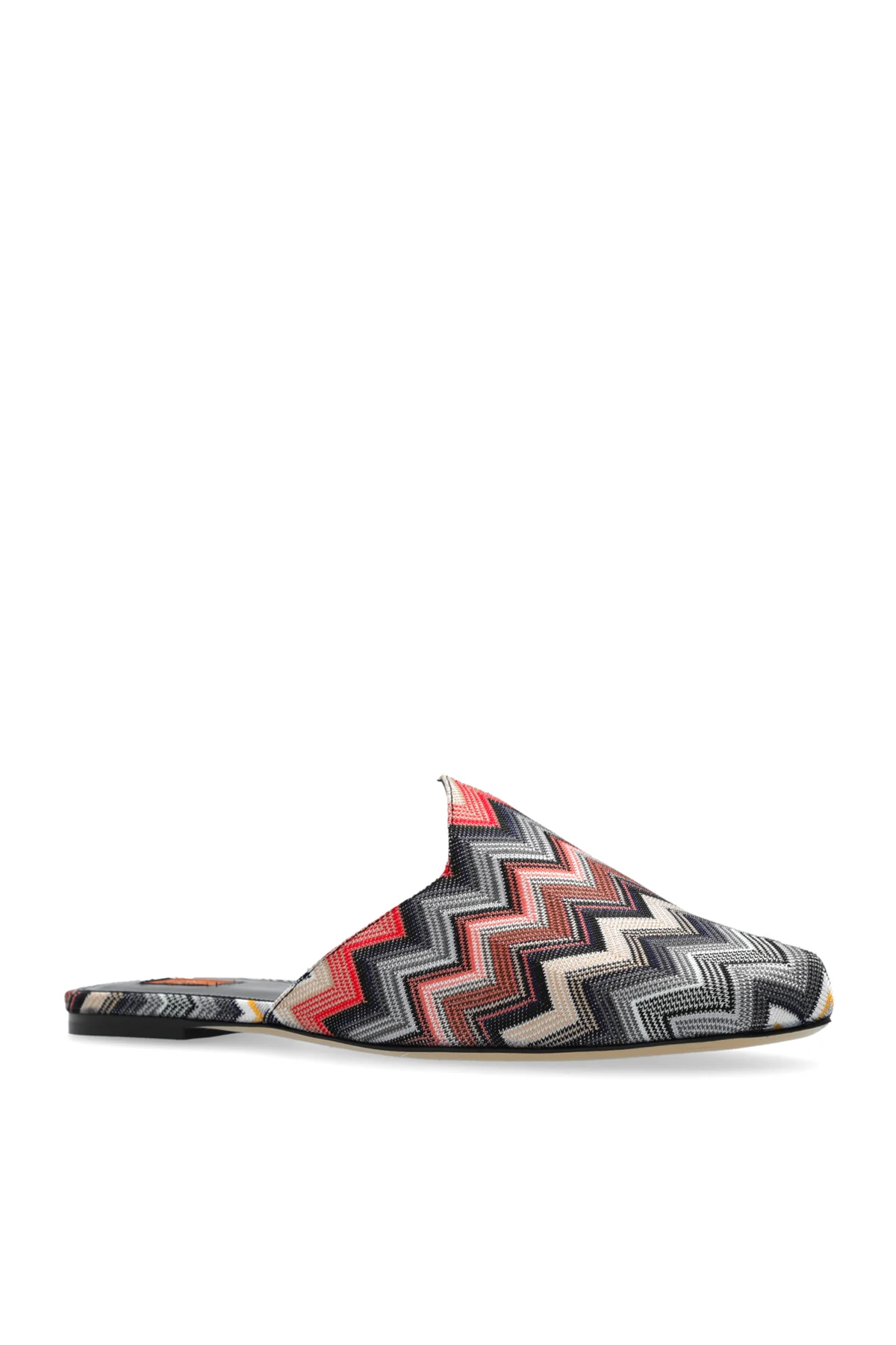 Eleganz und Komfort vereinen sich in einem außergewöhnlichen Kunstwerk der Schuhmode von der renommierten Marke Missoni . Wir präsentieren Ihnen exklusive Mule-Slipper , die sowohl durch ihr Design als auch durch unvergleichlichen Tragekomfort begeistern. Ihr charakteristisches, mehrfarbiges Chevron-Muster, verwebt mit Nuancen von Schwarz, Grau mit Akzenten von Rot und Weiß, zeugt von ihrer Einzigartigkeit und Unverwechselbarkeit.