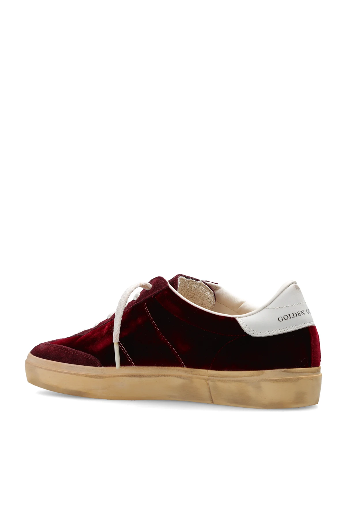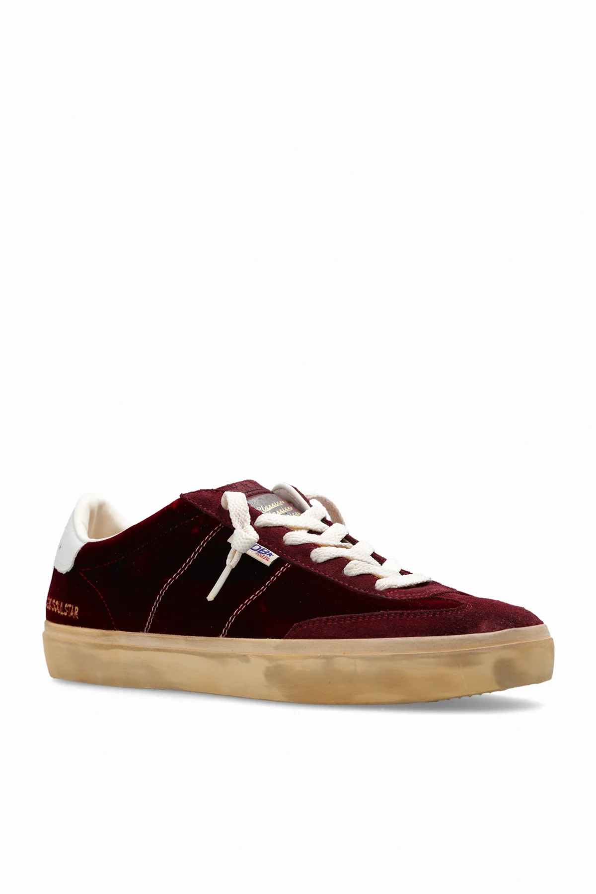 Maroon ‘Soul Star’ sneakers from Golden Goose. Crafted from leather, this lace-up pair features a white heel counter with logo, vintage effect and beige rubber sole.