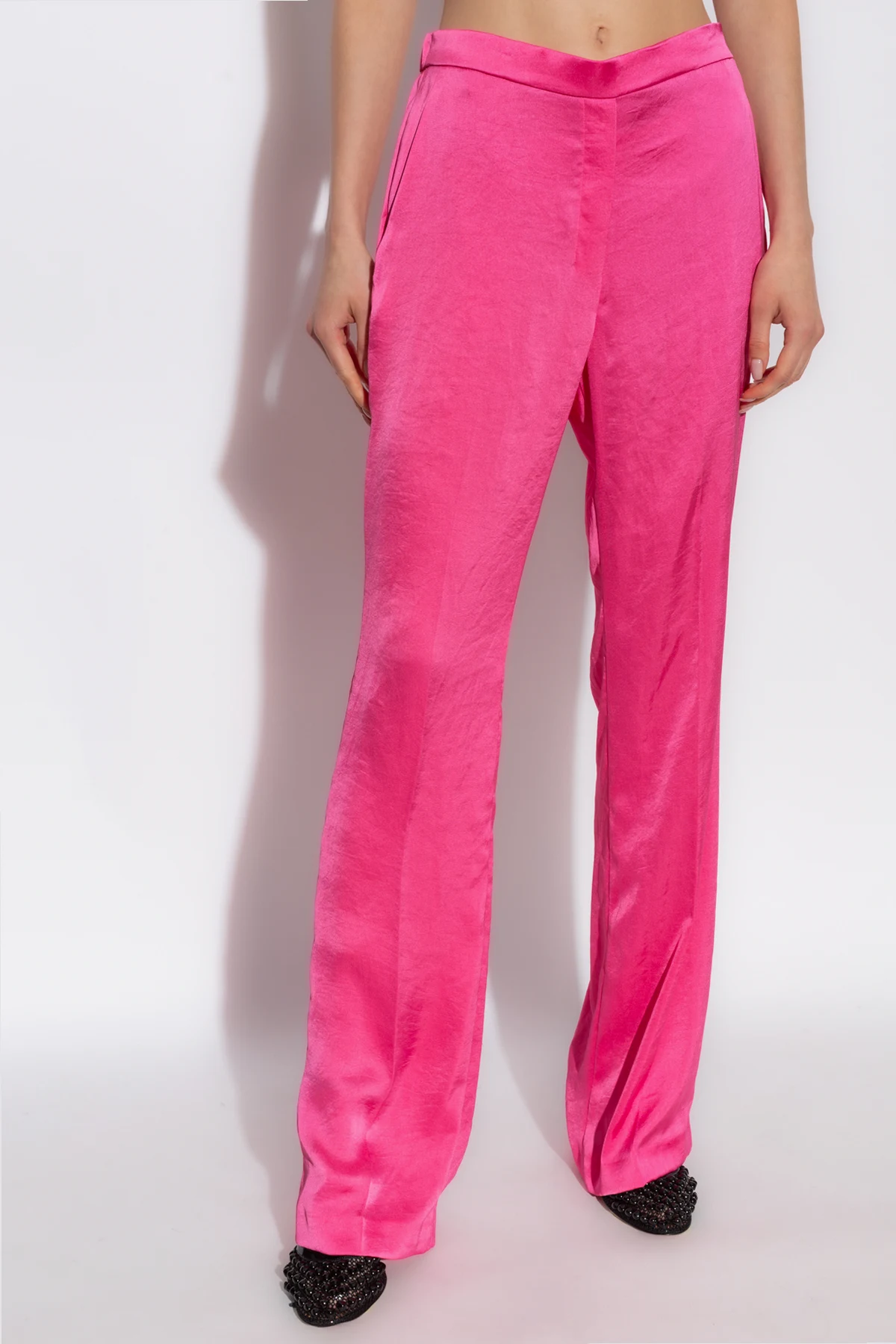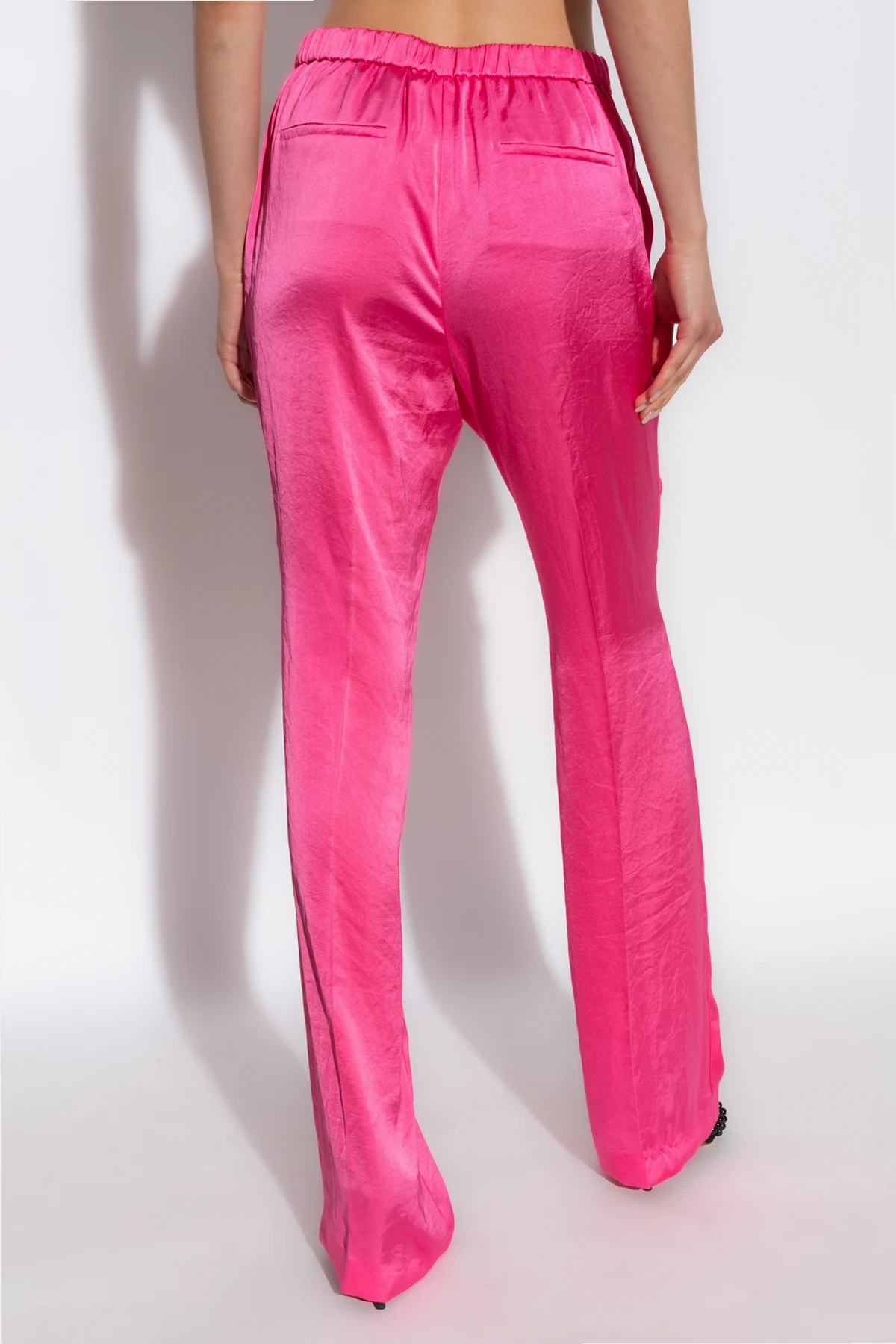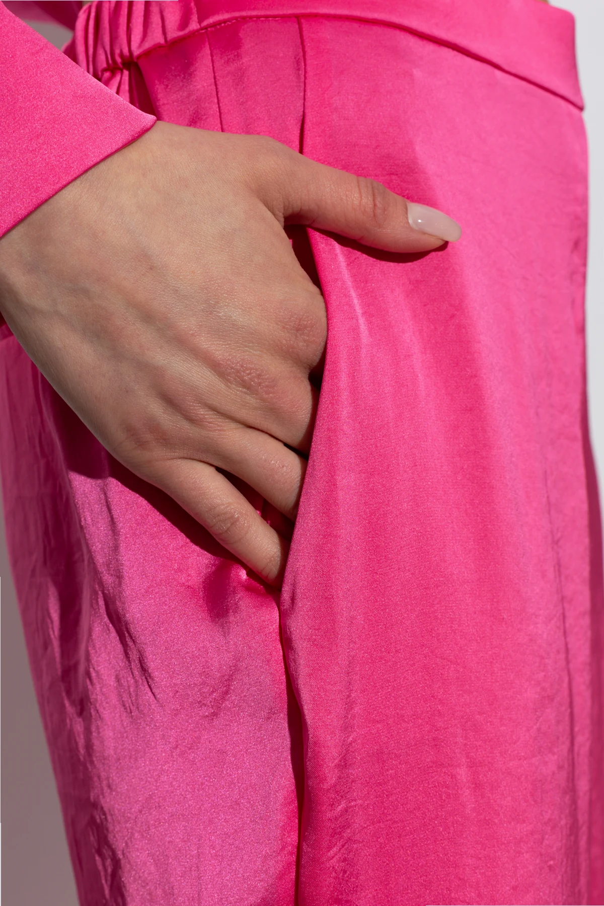 Aus glattem und leicht glänzendem Satin gefertigt, zeichnen sich die Hosen durch ihr luxuriöses Aussehen aus. Ihre einheitliche, intensive rosa Farbe verleiht ihnen Ausdruckskraft und modischen Chic, der den minimalistischen und eleganten Charakter unterstreicht.
