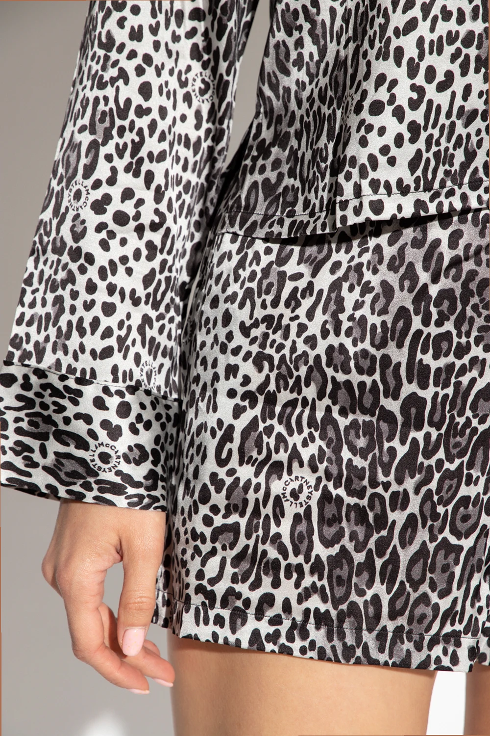 Grey and black pyjama bottom from Stella McCartney. Made of silk, this item features an animal motif accompanied by a logo, an elasticated waistband with an embroidered white logo and short legs.
