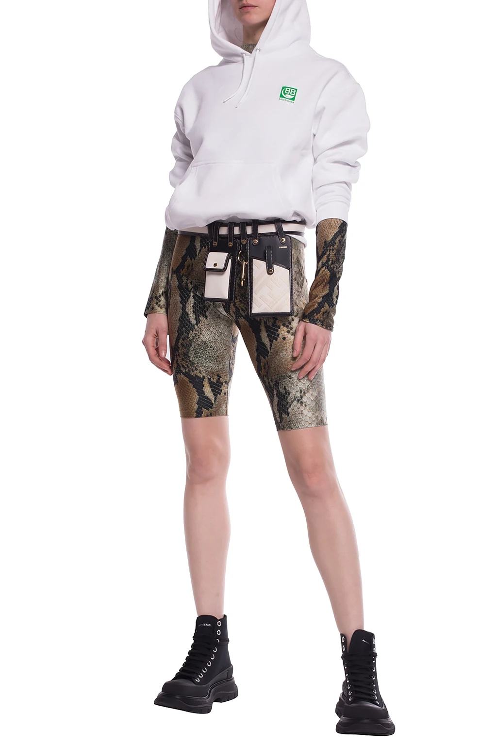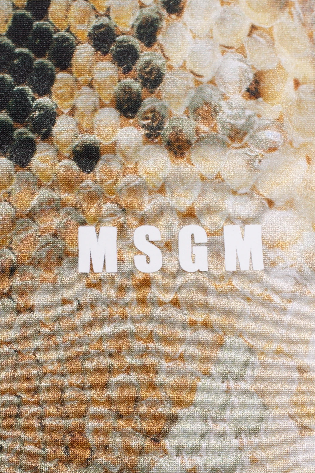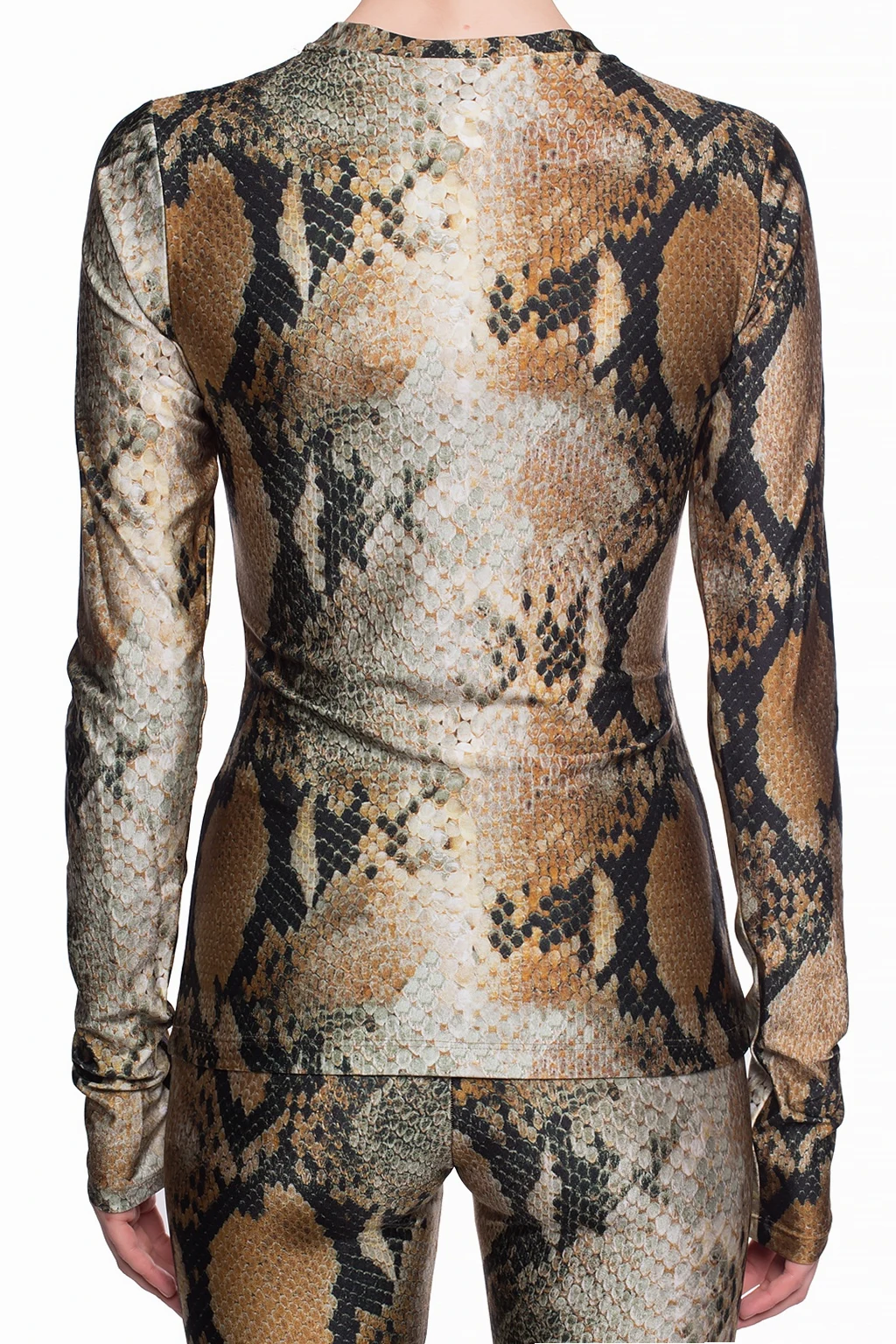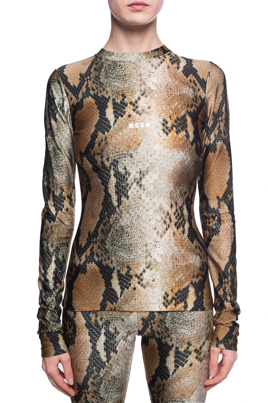 Beige and black top from MSGM. Decorated with an animal print and a logo. Long sleeves.