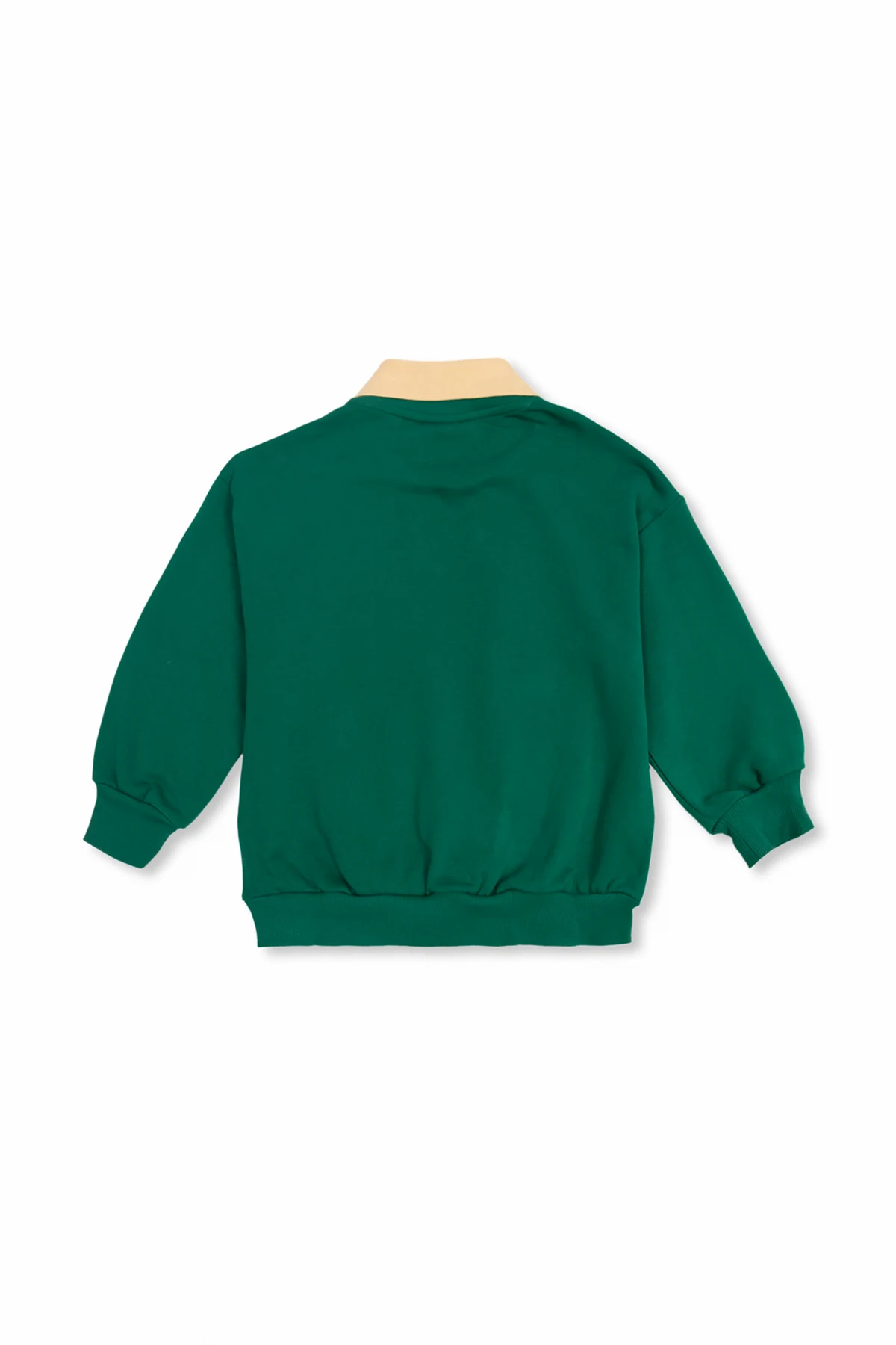 Die intensive, grüne Farbe und die originellen Patches verleihen dem Sweatshirt einen einzigartigen Charakter.