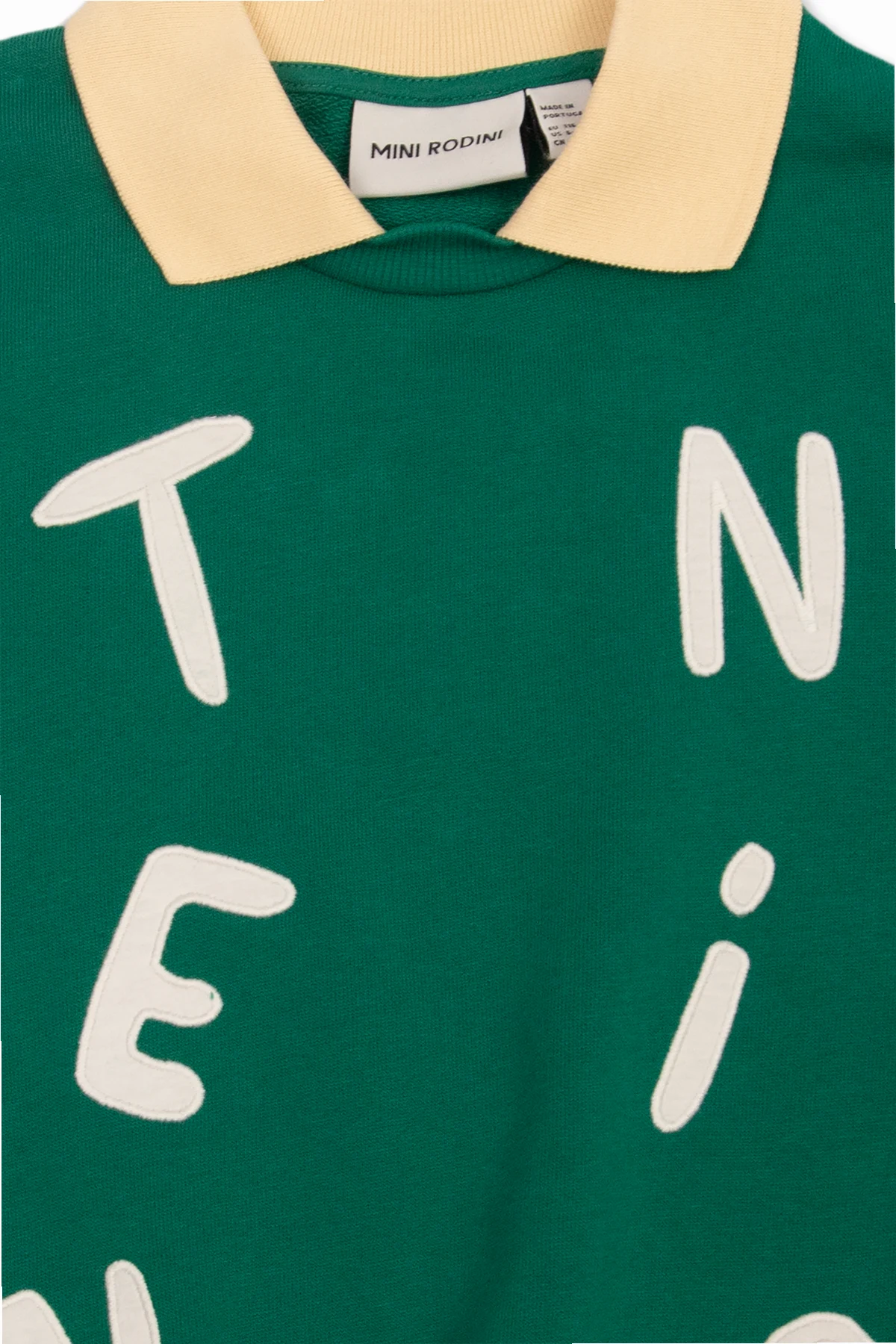 Es zeichnet sich durch eine intensive, grüne Farbe aus, die ihm Ausdruckskraft und Frische verleiht. Der auffällige Schriftzug "TENNIS" auf der Vorderseite, ausgeführt in großen, weißen Buchstaben, verleiht dem Sweatshirt Dynamik. Der kontrastierende Polokragen in einem zarten Gelb- oder Cremeton erhöht seine Eleganz, während die langen Ärmel mit Bündchen für eine perfekte Passform sorgen.