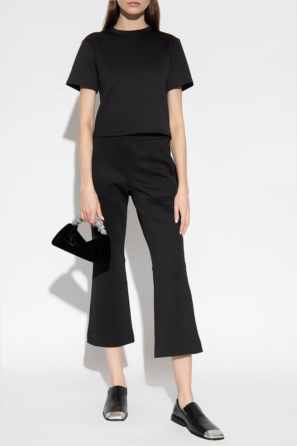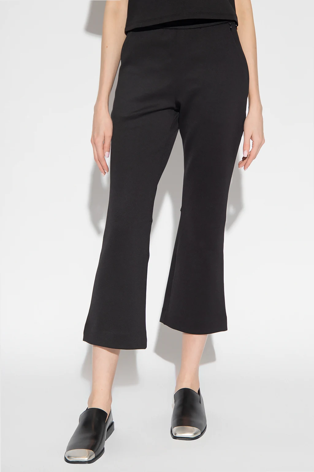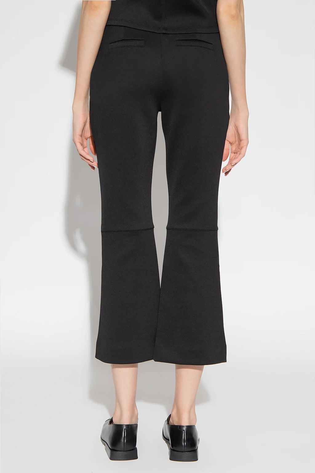Black trousers from Proenza Schouler White Label. Fastened with a concealed side zip, this pair features two concealed front pockets, two back pockets and flared, cropped legs.