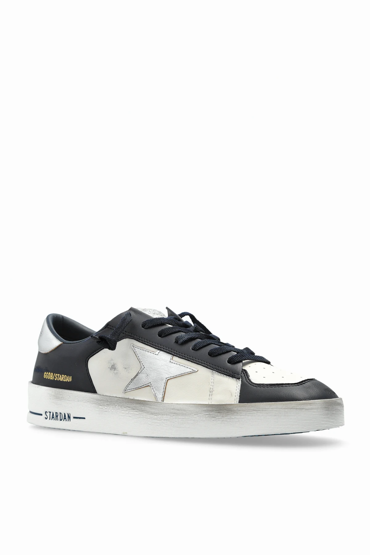 Gefertigt aus hochwertigstem Leder, sowohl innen als auch außen, bieten diese Schuhe nicht nur Stil, sondern auch Haltbarkeit. Die silberne Ausführung des hinteren Panels mit geprägtem Muster verleiht ihnen Eleganz, während der Schriftzug "Stardan" und das goldene Markenlogo an der Seite ihr einzigartiges Aussehen abrunden.