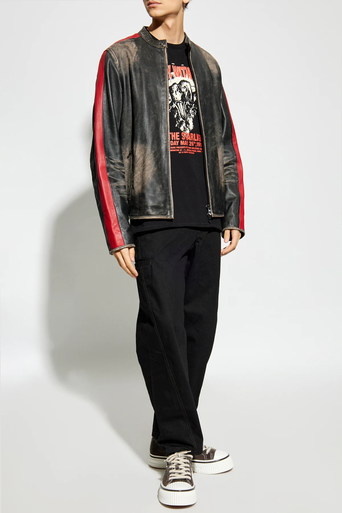Dieses T-Shirt, das aus hochwertiger Baumwolle gefertigt ist, zeigt einen Vintage-Effekt , der ihm einen einzigartigen Charakter verleiht. Die dominierende schwarze Farbe macht es universell und ideal für jede Gelegenheit.