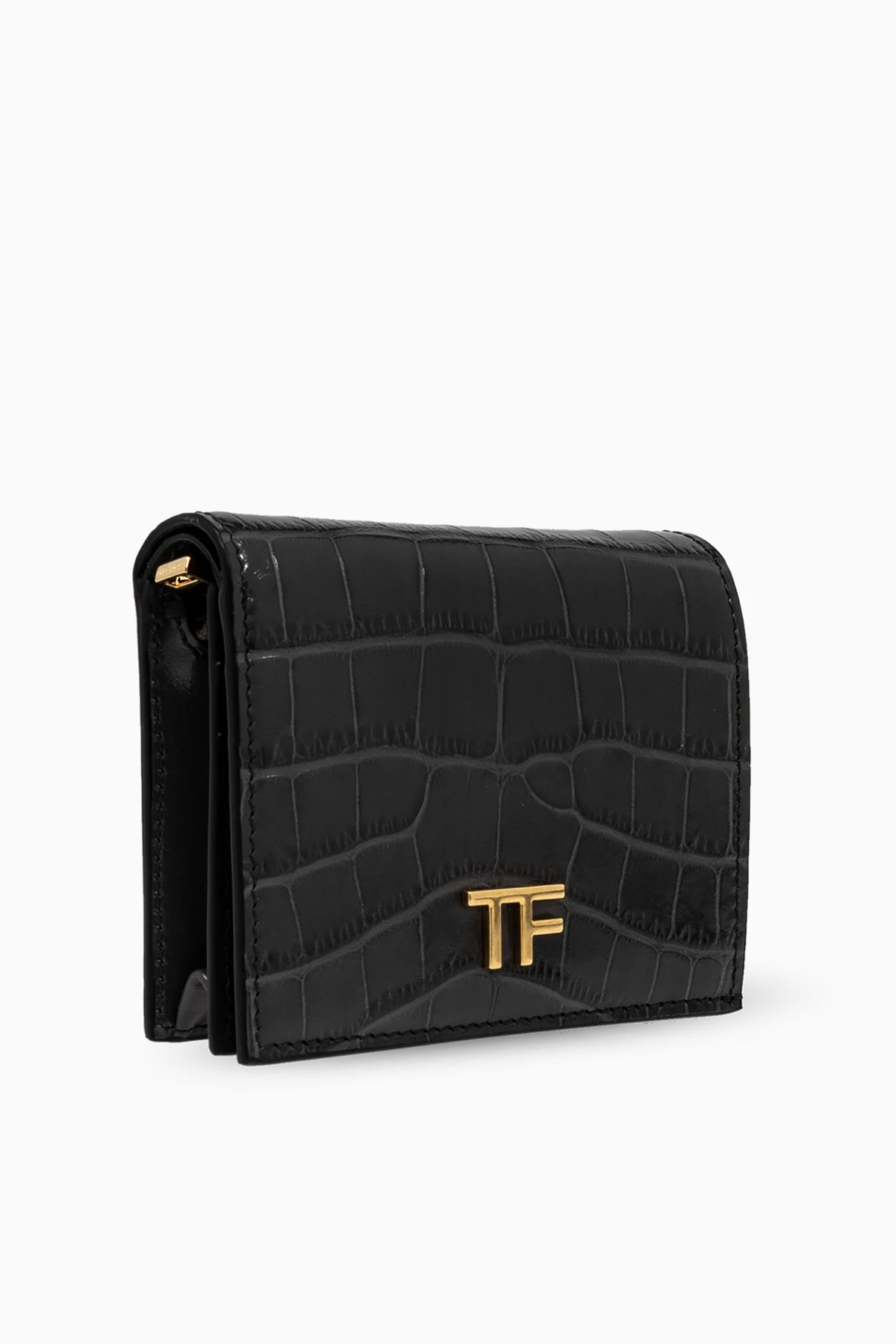 Gefertigt aus hochwertigstem Leder, sowohl außen als auch innen, spiegelt dieses Portemonnaie die Exklusivität wider, die für Produkte mit dem Namen Tom Ford charakteristisch ist. Die Vorderseite ist mit einem goldenen "TF"-Logo verziert, das Prestige verleiht und die Marke deutlich identifiziert.