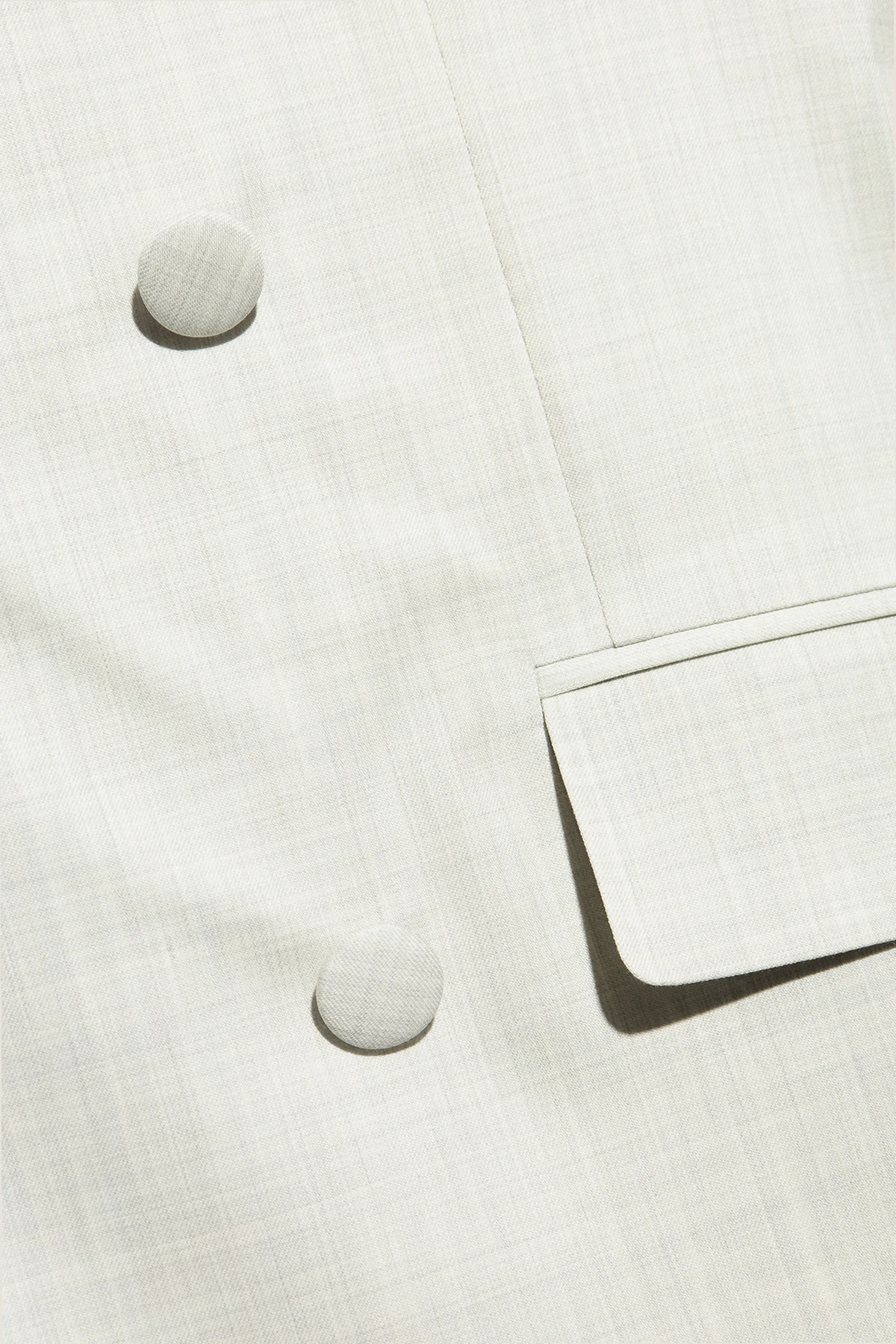 Der Stoff mit feinen vertikalen Streifen bietet nicht nur eine außergewöhnliche Ästhetik, sondern auch Tragekomfort an wärmeren Tagen. Darüber hinaus formt der gut angepasste Schnitt mit einem betonten Mittelnaht im Rücken die Silhouette wunderbar, indem er ihre Vorzüge hervorhebt. Taschen mit Patten sowie eine auf Brusthöhe fügen Funktionalität hinzu, während sie den raffinierten Stil bewahren.
