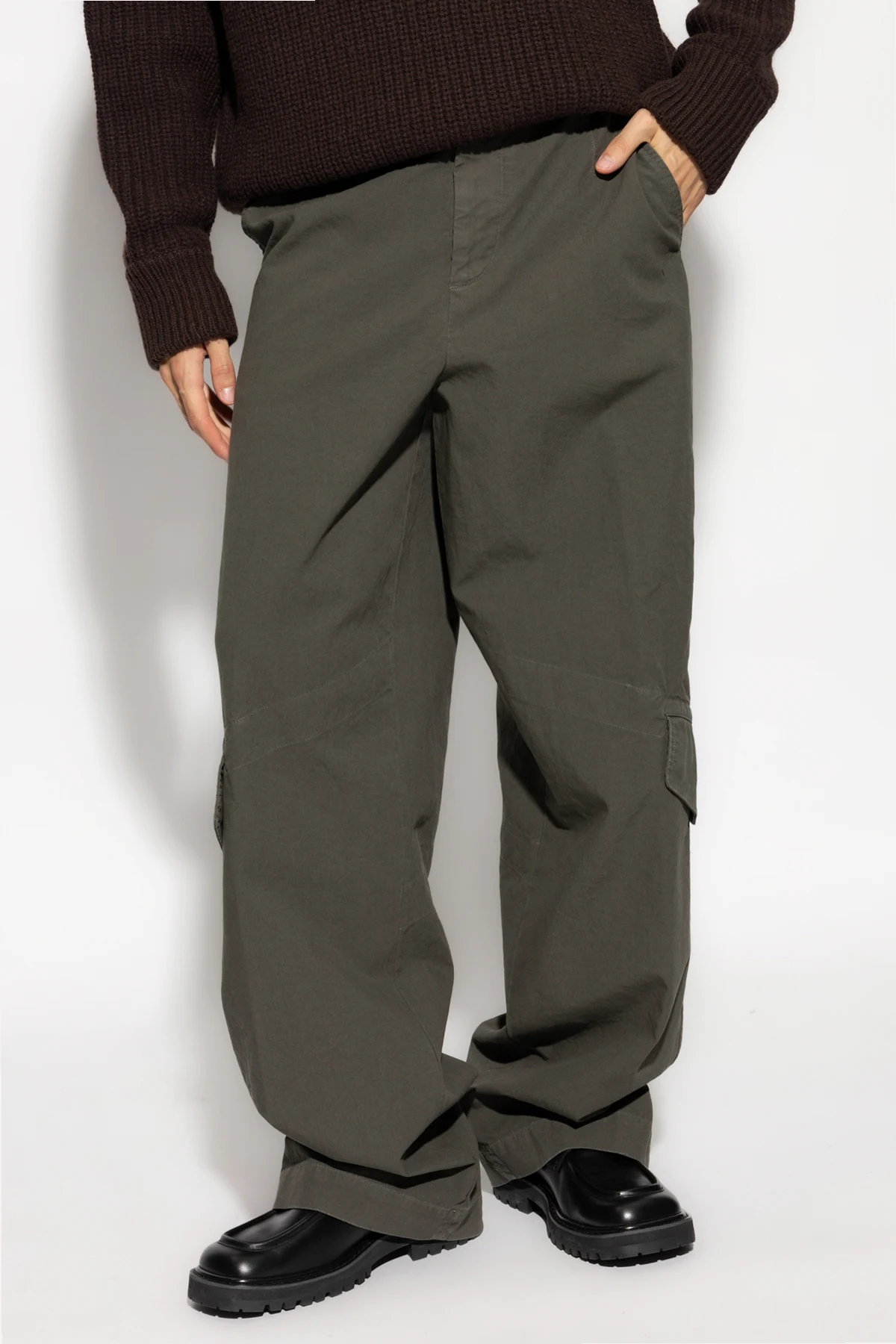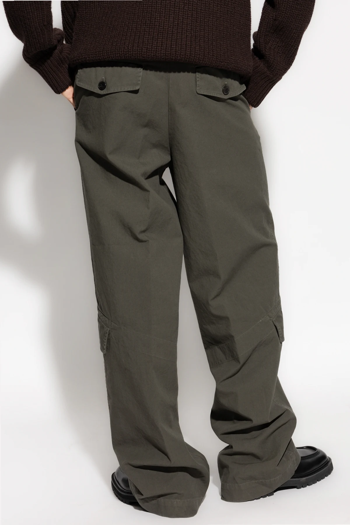 Wir präsentieren Hosen mit Taschen aus der exklusiven Kollektion von Dries Van Noten. Diese Hosen, aus hochwertiger Baumwolle gefertigt, verbinden Eleganz mit Funktionalität, was das Markenzeichen des renommierten Designers ist. Dries Van Noten, Mitglied der berüchtigten Antwerp Six, ist bekannt für seinen provokativen Ansatz zur Ästhetik, und seine Kreationen zeichnen sich durch ungewöhnliche Schnitte und edle Stoffe aus.